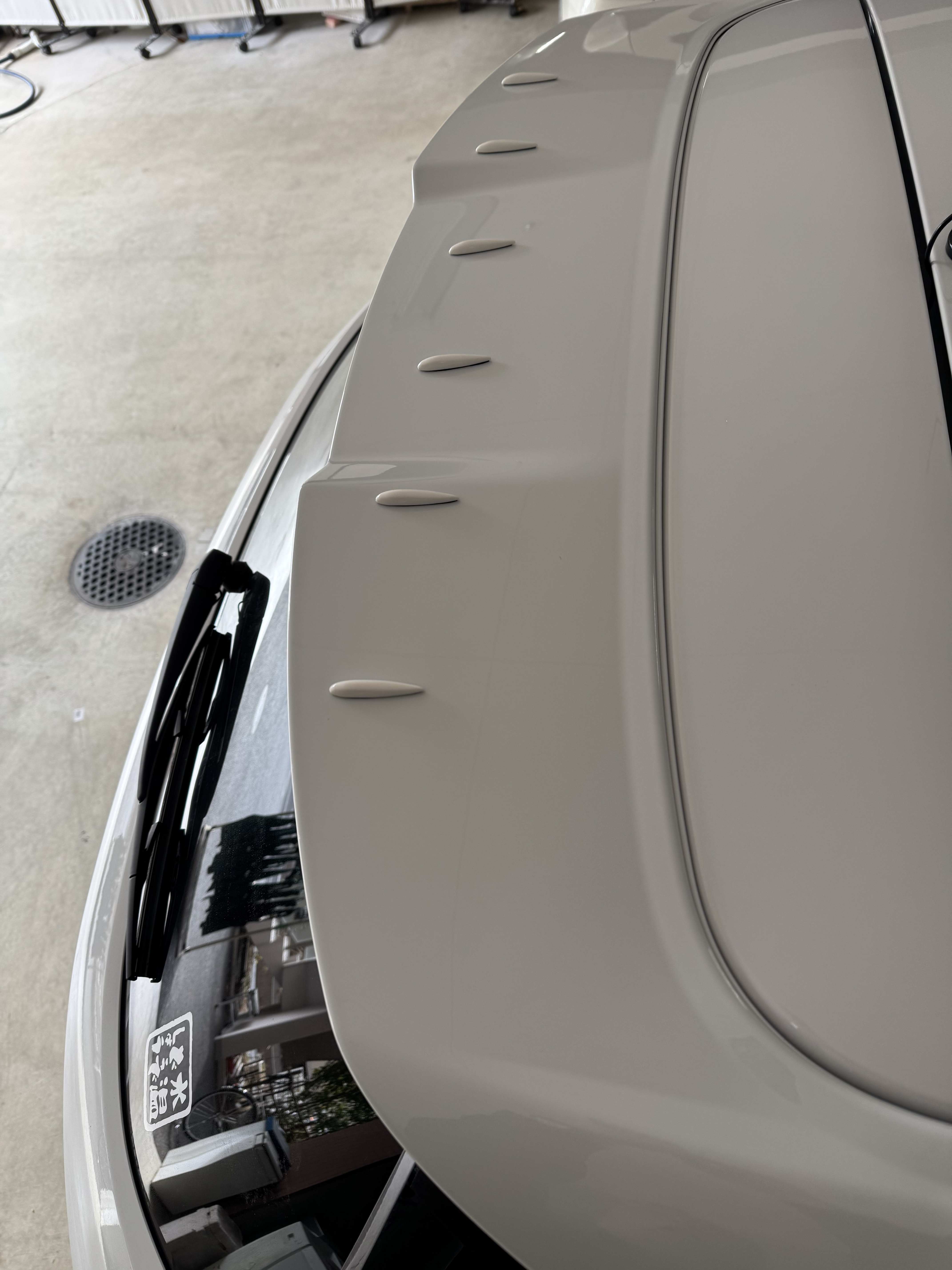 間違えて買った白色のVGの余りをもともと納車時から付けていた純正OPのルーフスポイラーに貼ってみました。なんちゃってSTIルーフエンドスポイラーの完成です🤣