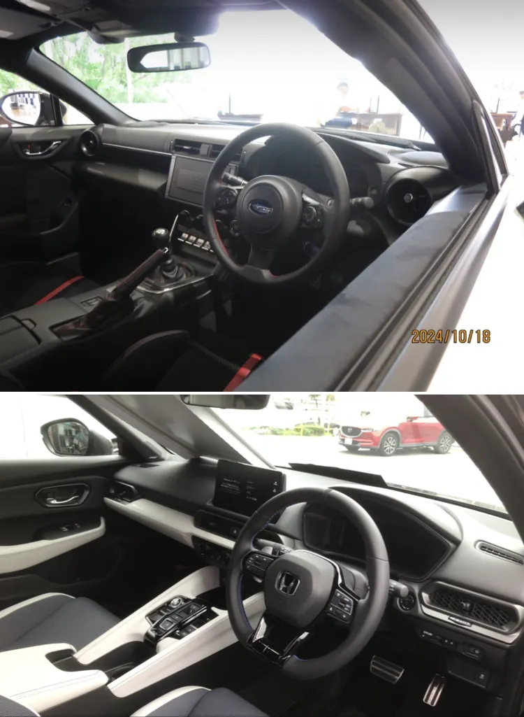 運転席のホールド性は同じくらいに感じましたが、プレリュードは助手席だけサイドサポートのワイヤーをなくして乗り降りしやすくしたり、座り心地も柔らかめにしているのが特徴です。その辺りはさすが元祖デートカーだなと感じました‼ 両車とも後席にも座りましたが、足元はサイズが大きくFFのプレリュードの方が広かったですが、頭上の余裕はBRZの方があって意外でした😲