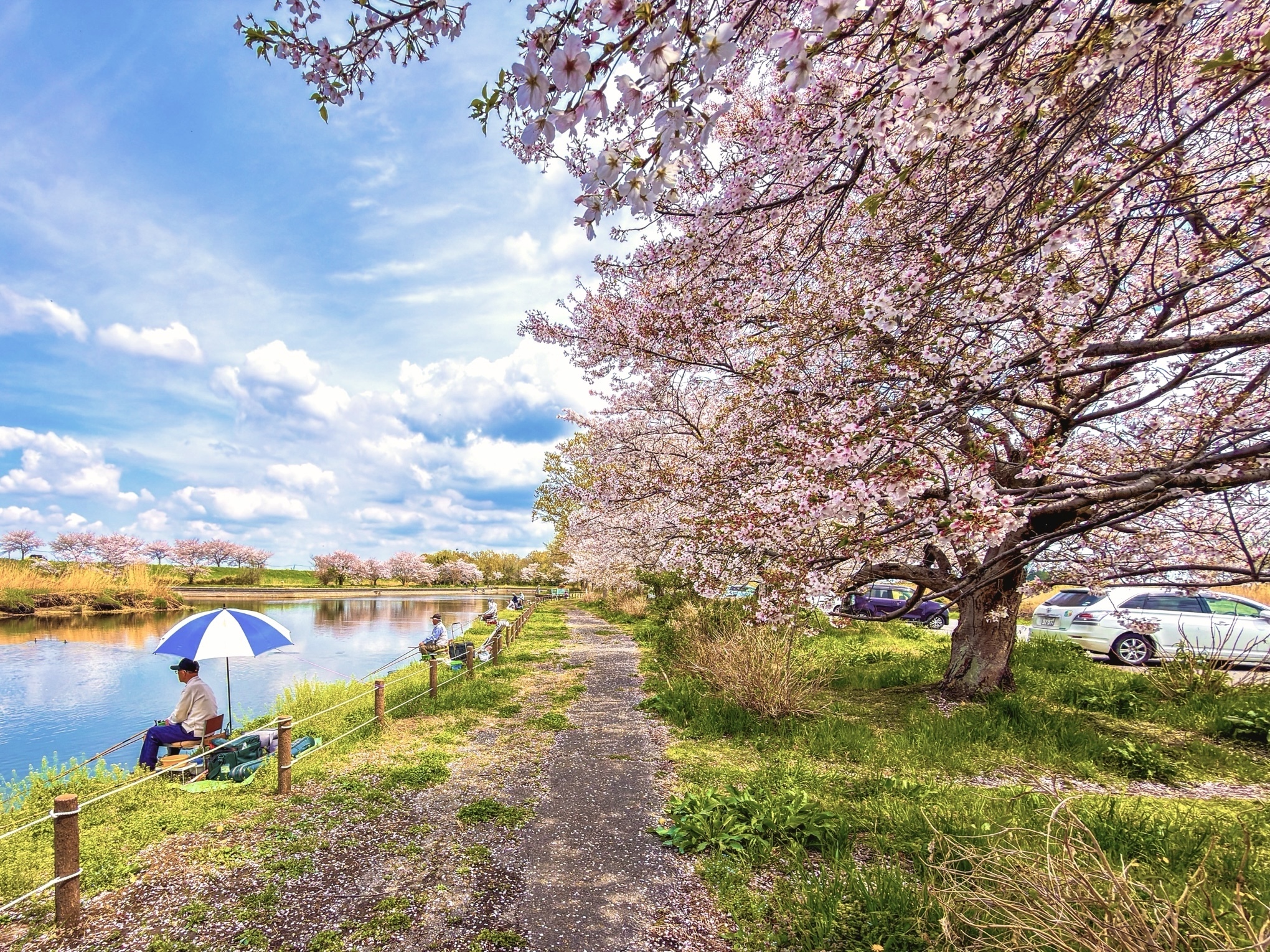 桜はかなり散り始めていましたが、部分的にはまだまだ綺麗で、遠目からは意外といい感じに見えました❣️遅いかなと思ったけど来て良かった😆