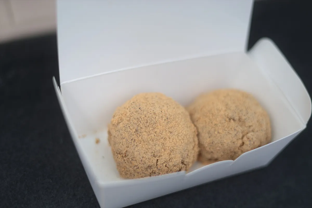 08. 黒豆きな粉のおはぎをいただきました。すごくボリューミーでこの後お腹が膨れて晩ごはんまで影響しました・・・。