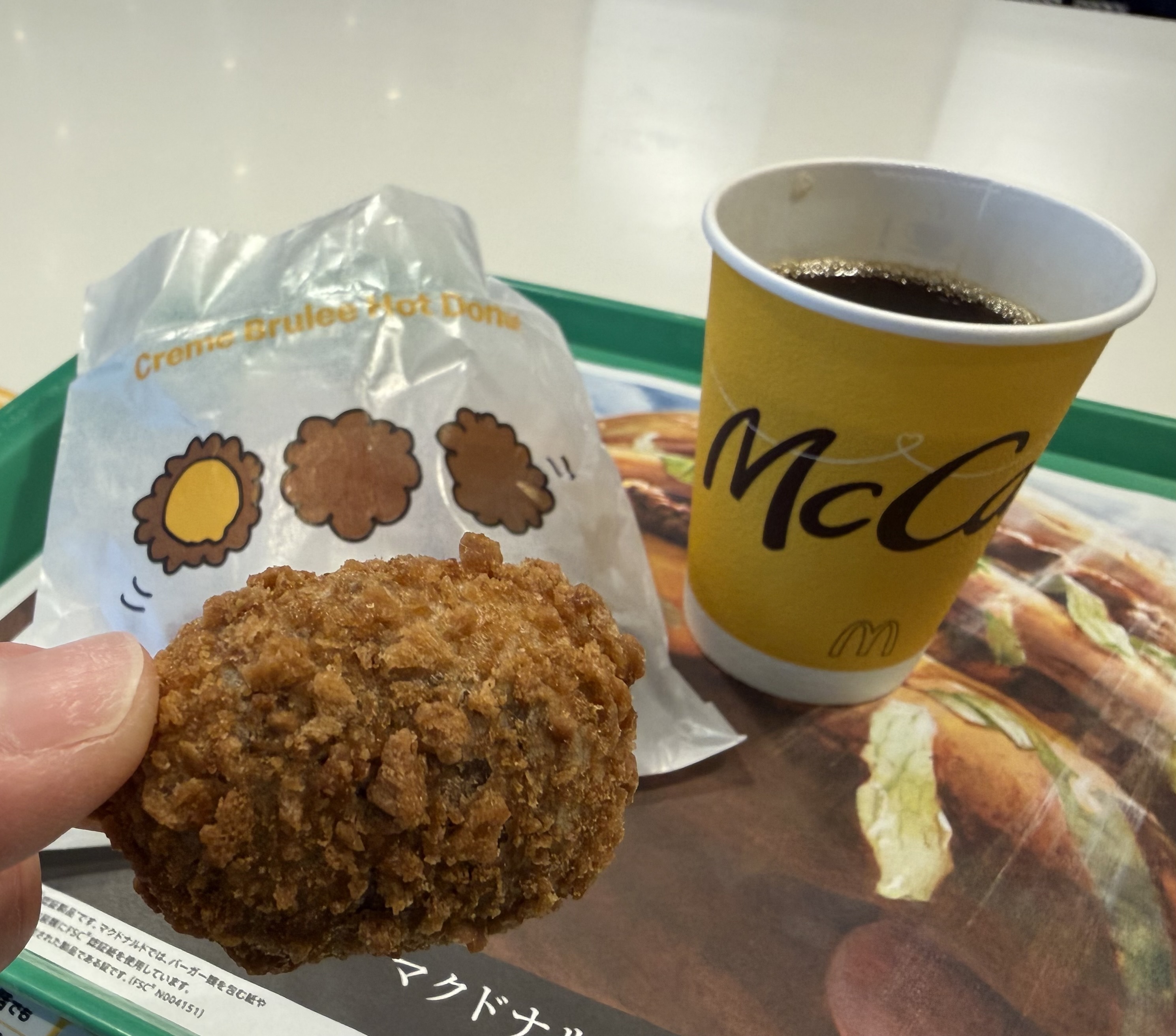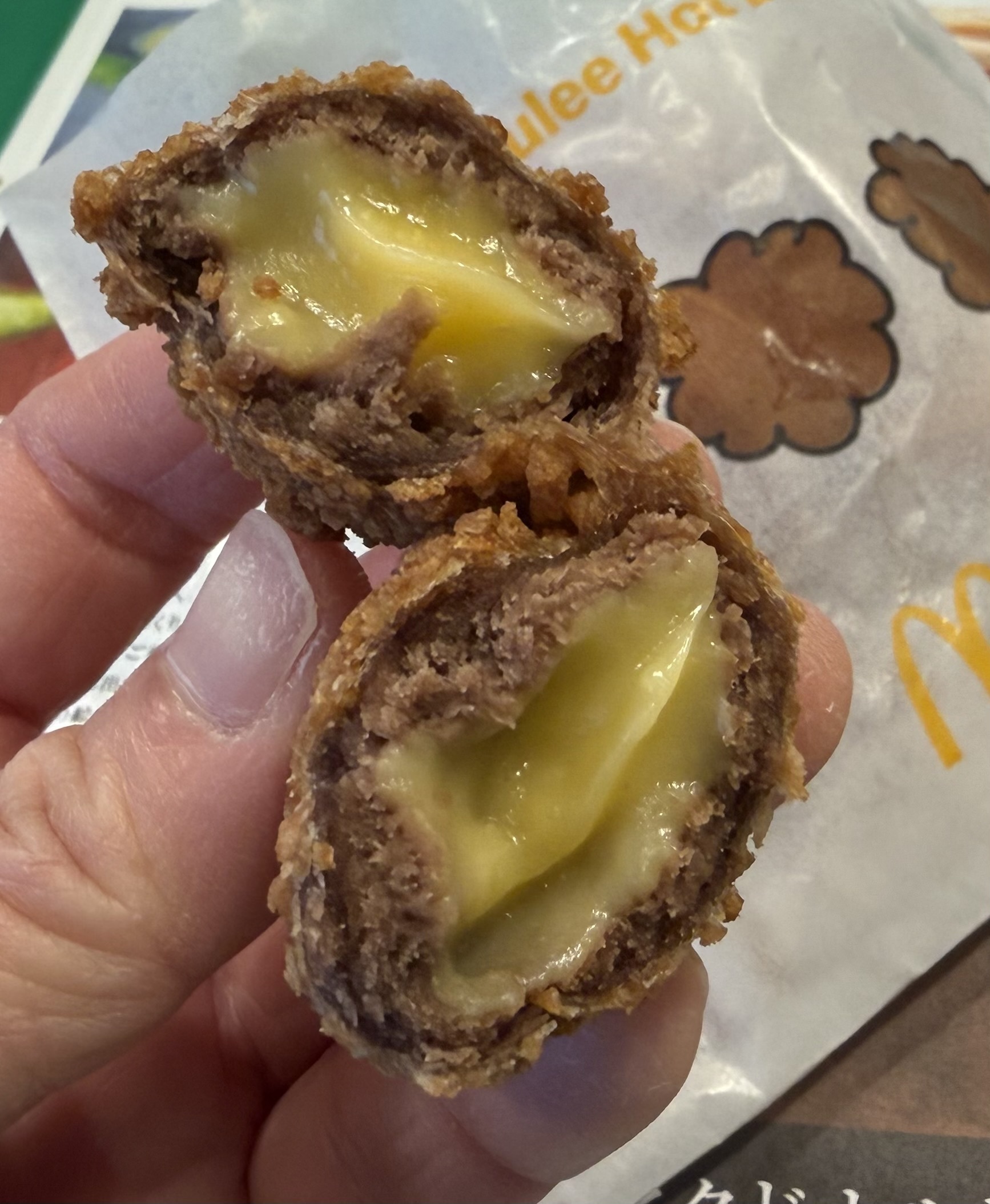 トップ > たべもの係 > マックのクリーム ブリュレ ホットドーナツ くまこ 2026/02/25 17:01 マックのクリーム ブリュレ ホットドーナツ またまたマックの期間限定スイーツを食べてみました❣️ クリームブリュレホットドーナツ🍩 ドーナツにはやはりコーヒーでしょう☕️ ドーナツを手に取ってみると… なんだか竜田揚げみたいですね😆 大きさはチキンマクナゲットほどの大きさの物が3つ入ってきます。 香りはディズニーランドのミッキーのワッフルのお店の前の様な甘い香りです🧇 割ると中にはカスタードクリームが。 それほど油っこくなく、程よい甘さで美味しくいただきました😋 いいね 共有する 共有する X facebook LINE リンクをコピー コメントする 0 件の返信 (新着順)