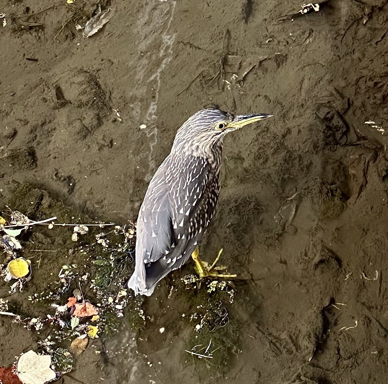 写真を拝見しました。この鳥は「ゴイサギ」というサギの仲間です。