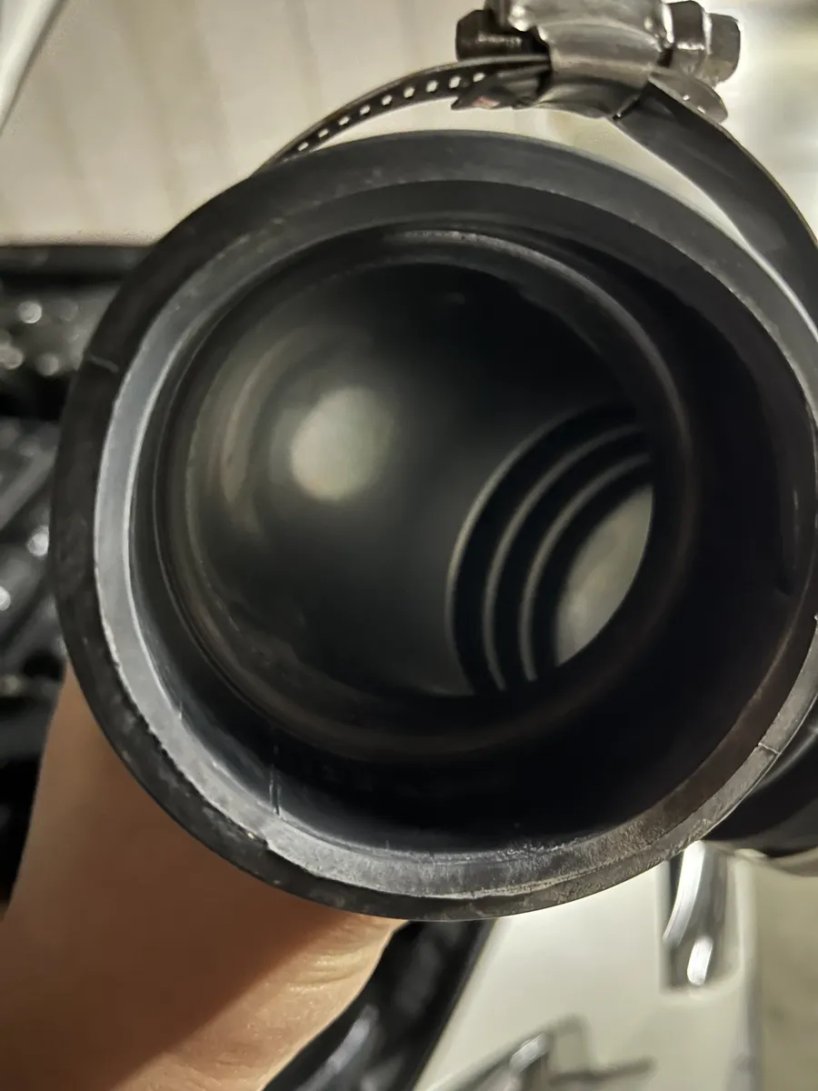 インテークホースをゼロスポーツのものに交換しました。除電のためアルミテープも貼り付けてます。こちらも通気抵抗削減、吸入量増加を目指します。純正ホースの中はこんな感じ👇中にもしっかりジャバラがありますね。。