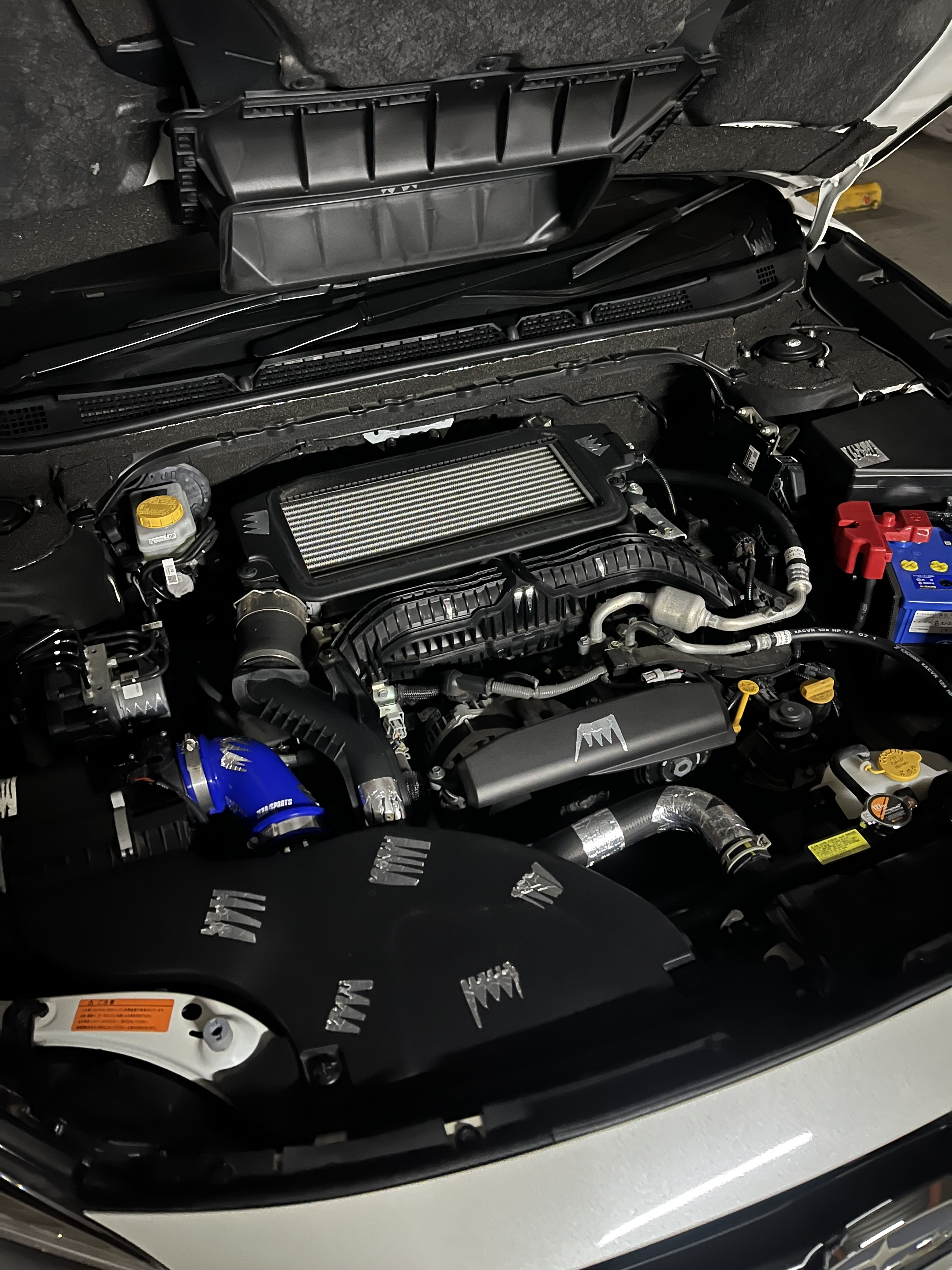 吸排気チューンはここまでです。おまけで、他にエンジンルーム内の除電でいろいろな箇所にアルミテープを貼ってます👇