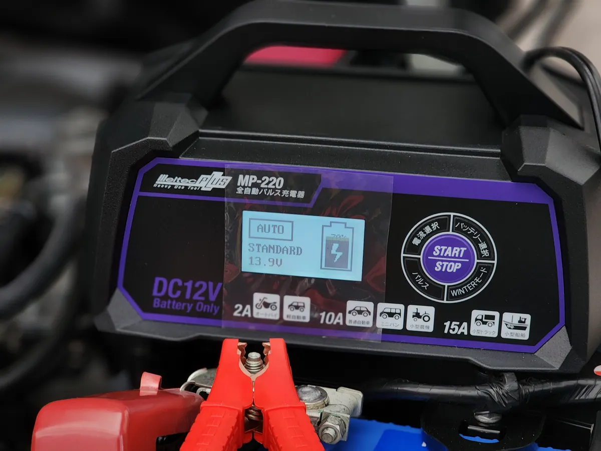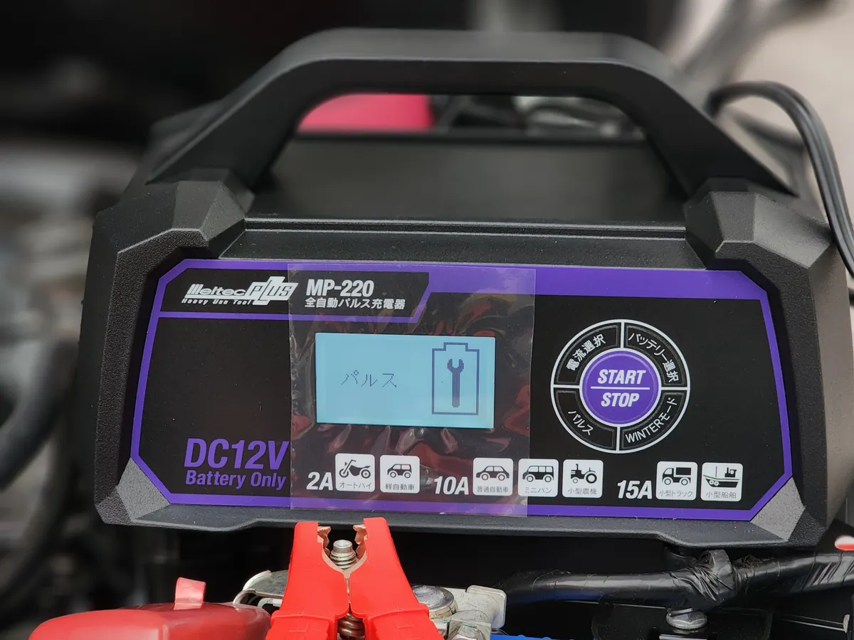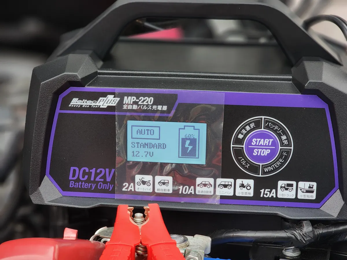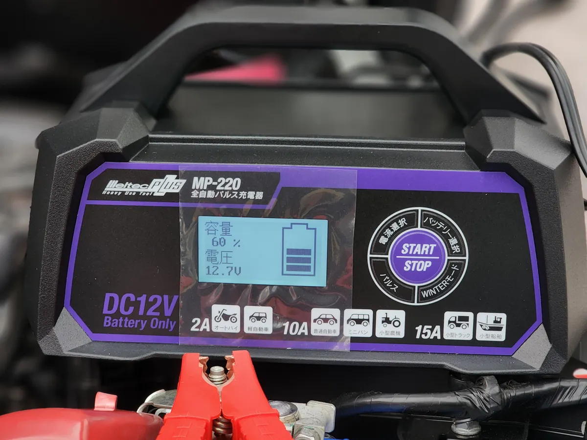 1月に入りましたのでメルテックMP-220 で定期的なバッテリー充電を行いました。前回は12月の初めにしたので約1ヶ月ごとです。