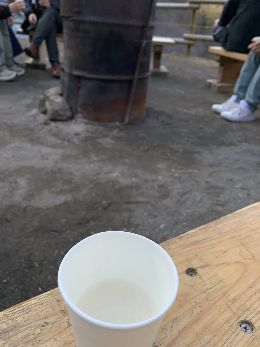 薪ストーブのそばで飲む温かい甘酒は美味しかったです😊(結構飲んでから撮りました笑)