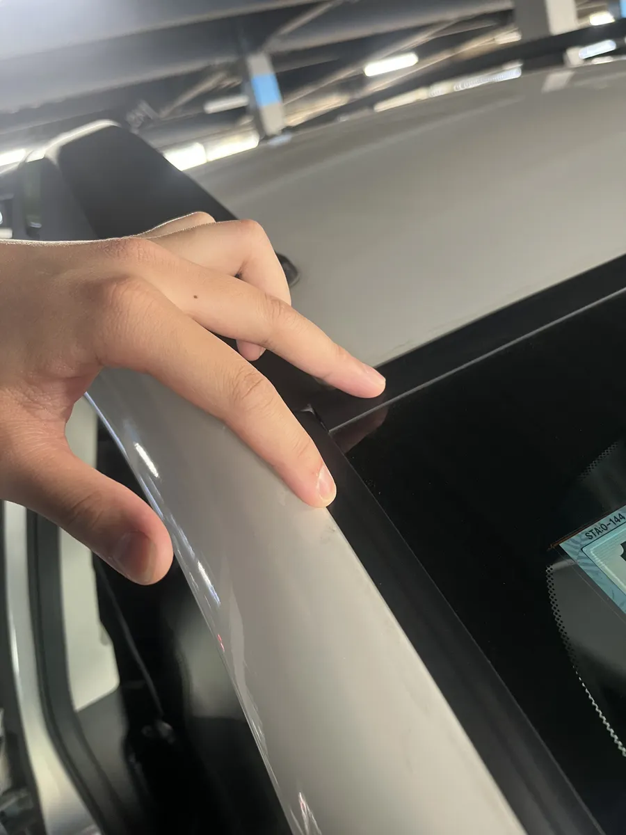 フロントウィンドウ、上部と左右にゴムストリップを貼ってます。純正はここにスキマがあります。これを貼って、フロントウィンドウに当たる風を乱さず上左右に流してあげます。ここは意外と隠れポイントです😁