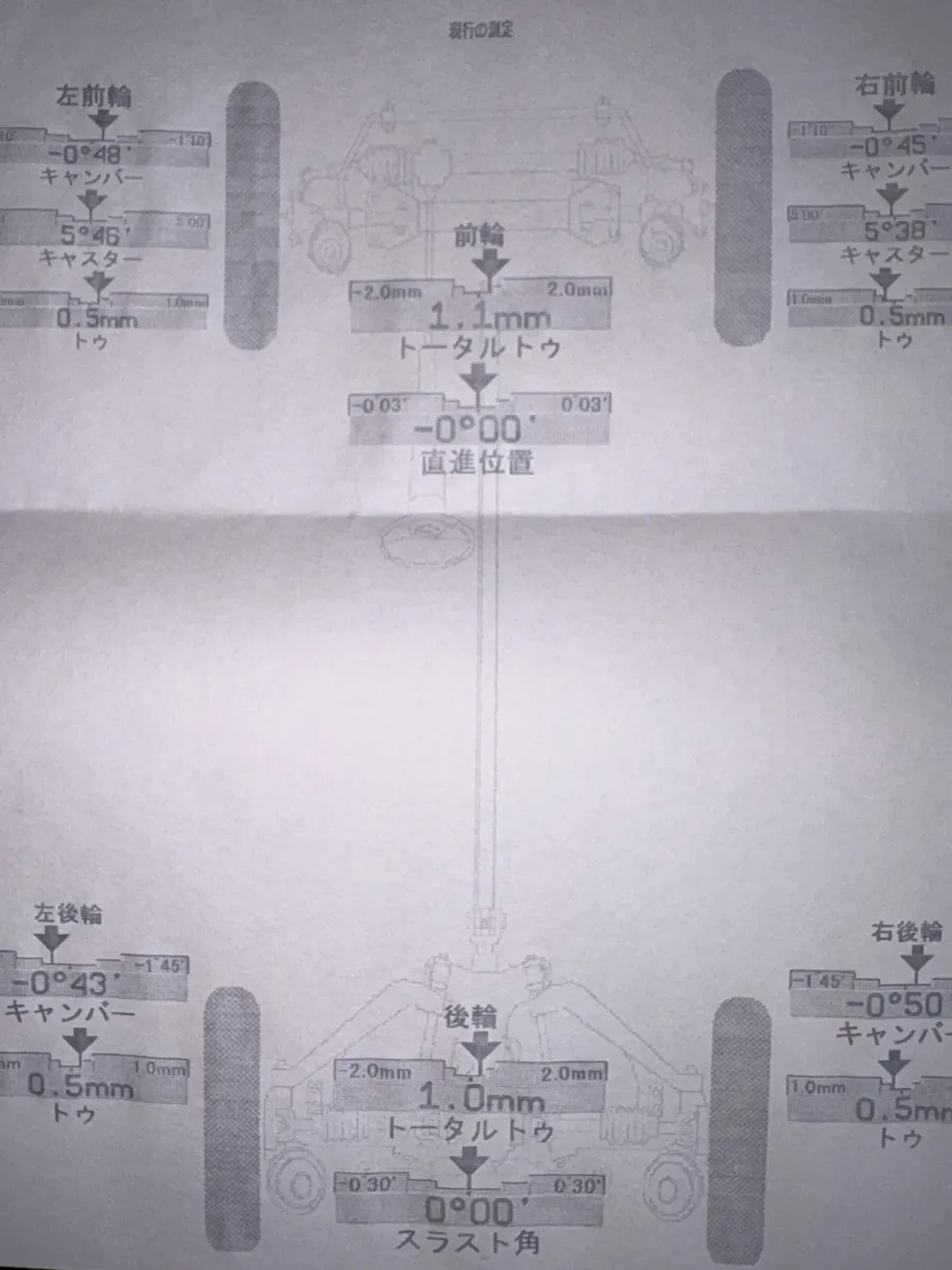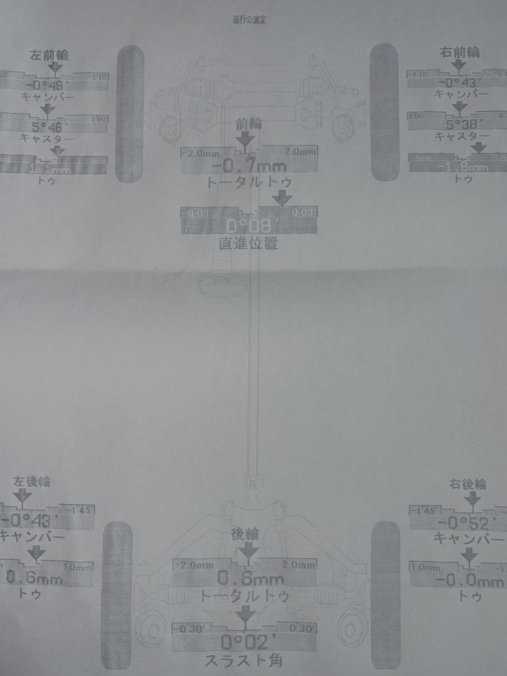 でも気持ち悪いのでコックピット川越さんにてアライメント測定を実施。