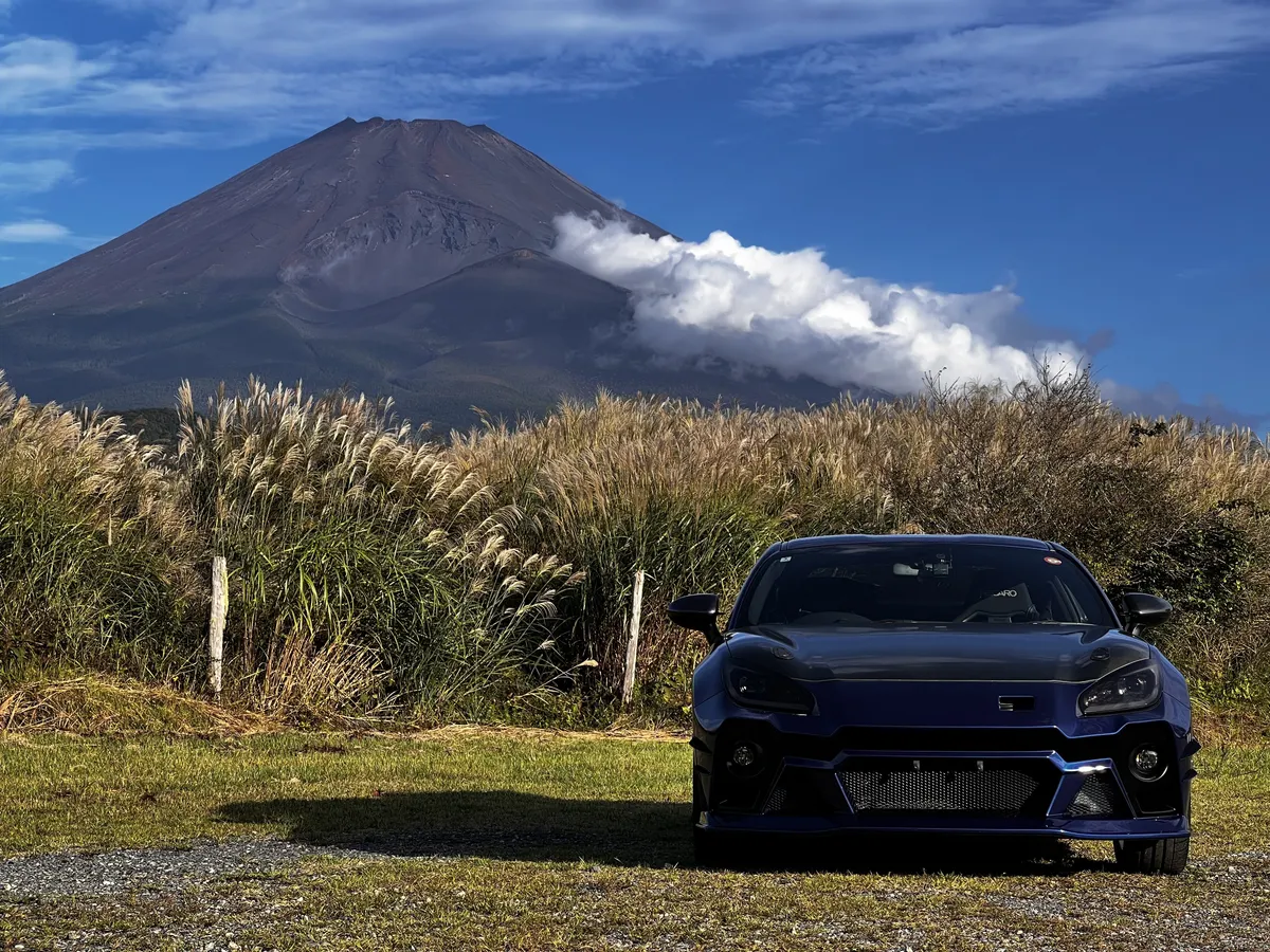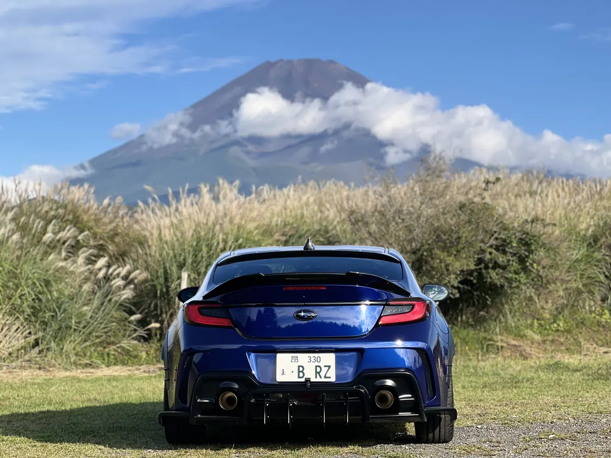 富士山とススキとBRZ