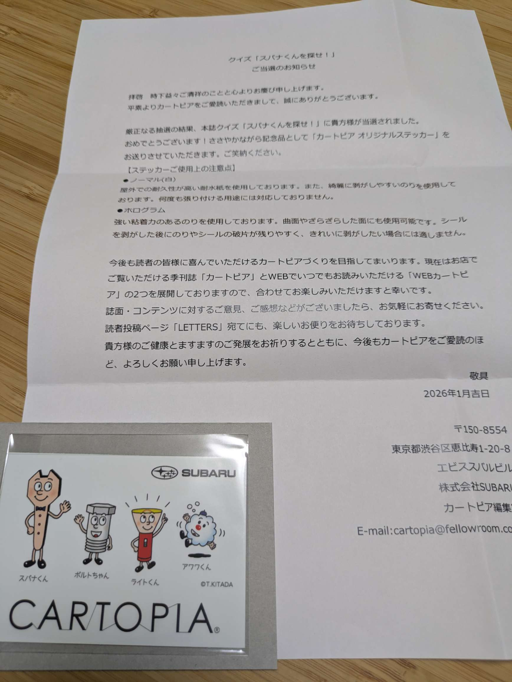 トップ > その他 > カートピア「スパナくんを探せ」応募当選したぁ~👍 ニレドン@GU7 2026/02/03 11:24 カートピア「スパナくんを探せ」応募当選したぁ~👍 カートピア冬号でスパナくんを見つけて、試しに応募したらステッカー当選しました😊 ノーマルの白色にホログラムのステッカーです! スパナくん、ボルトちゃん、ライトくんにアワワくん…… 貼るのももったいないので、しばらくは眺めてます!(笑) カートピア スパナくんを探せ いいね 共有する 共有する X facebook LINE リンクをコピー コメントする 0 件の返信 (新着順)