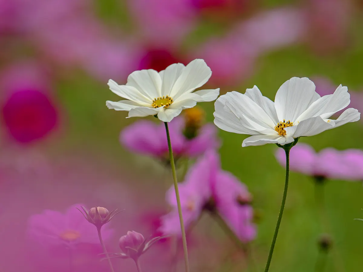 色とりどりのコスモスと多種多様な水鳥、どれも綺麗ですね❗️