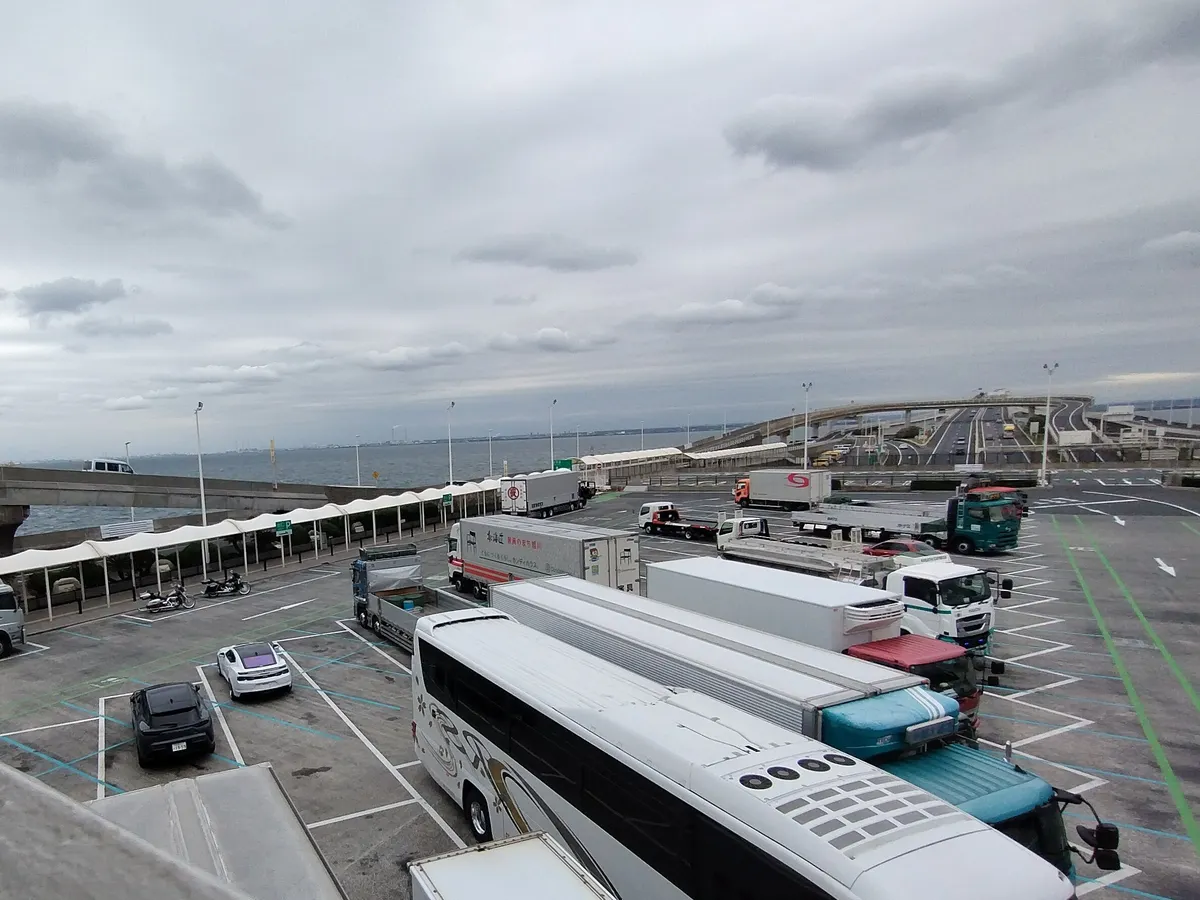 見えてきた海ほたるPA。近づくと、まるで要塞🏰のよう