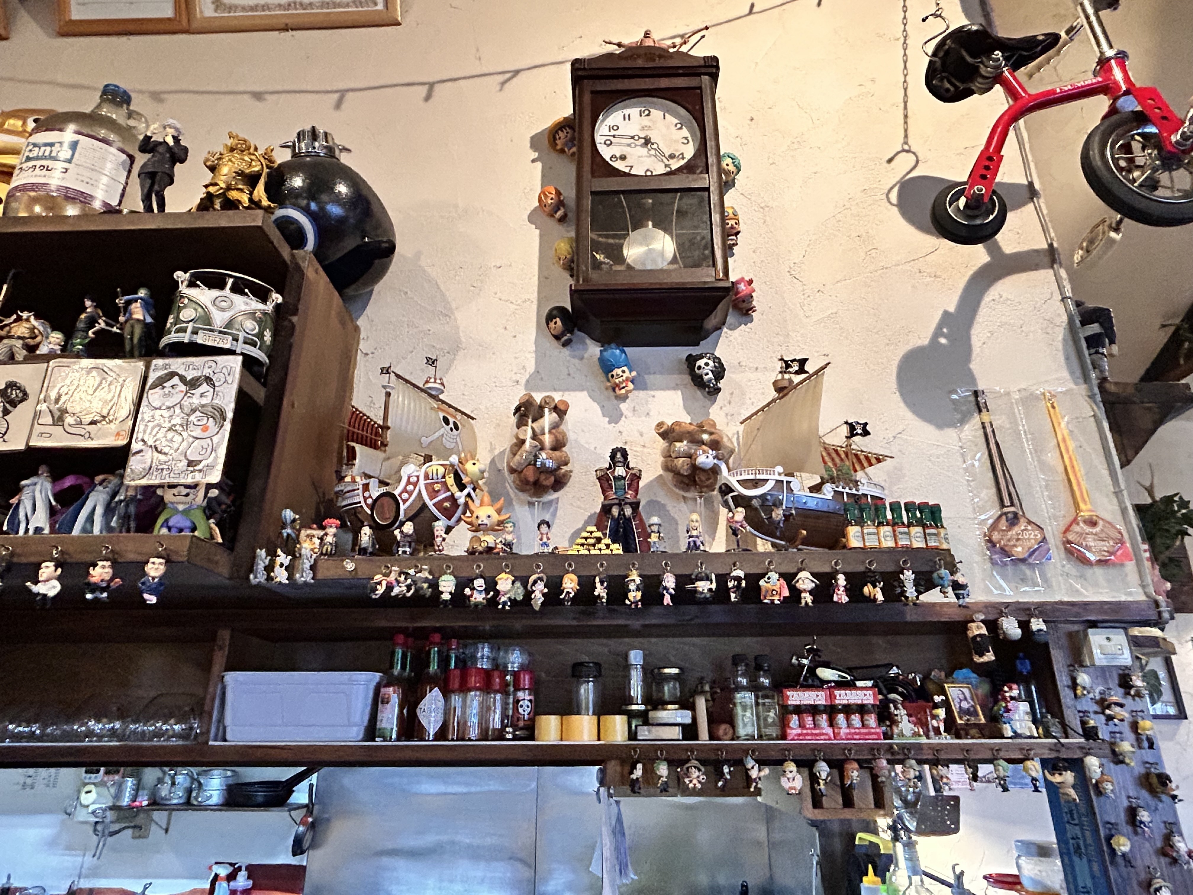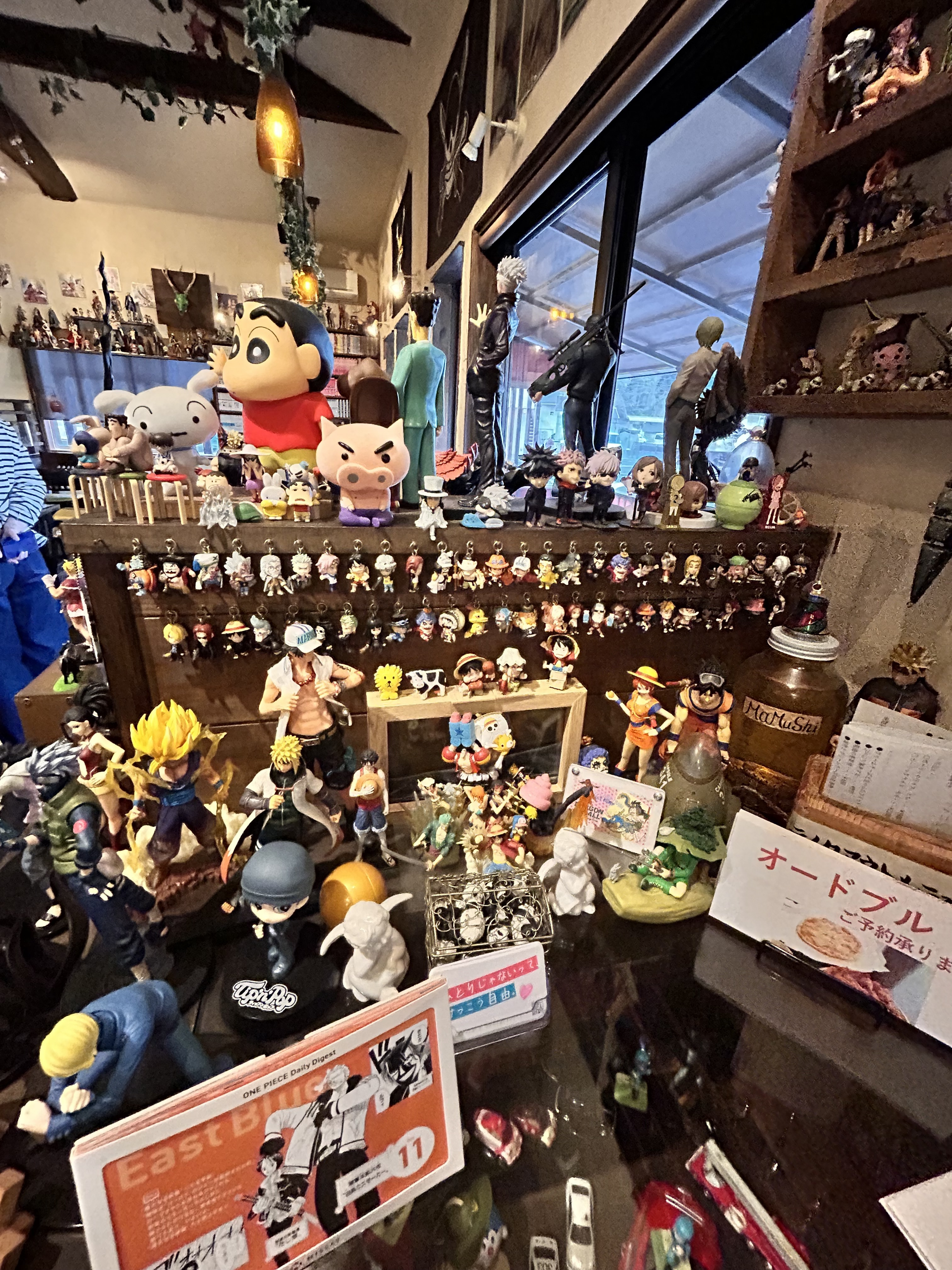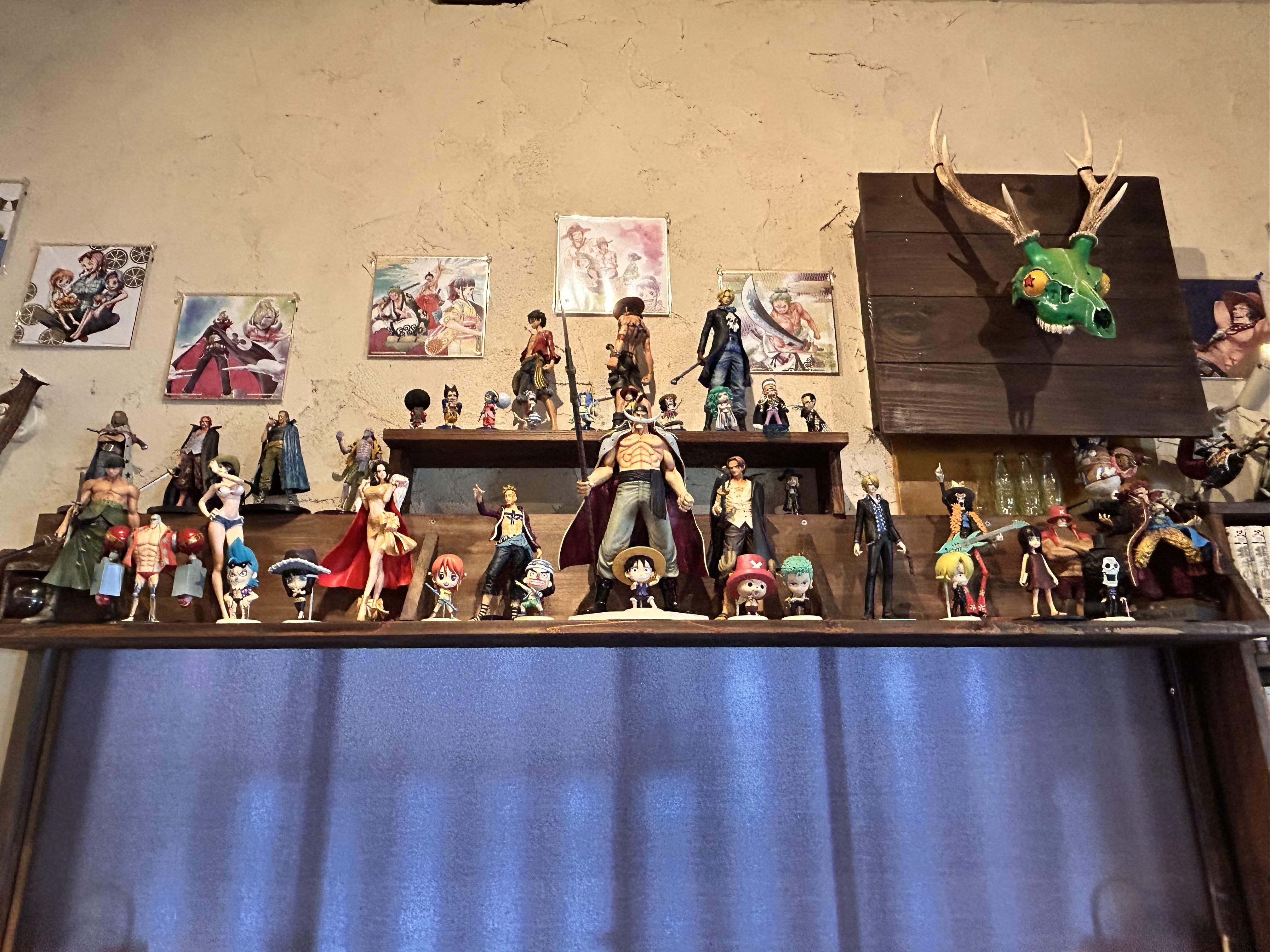 ドアを開けて店内に入ると、ワンピースのフィギュアがズラーっと飾られていました😆