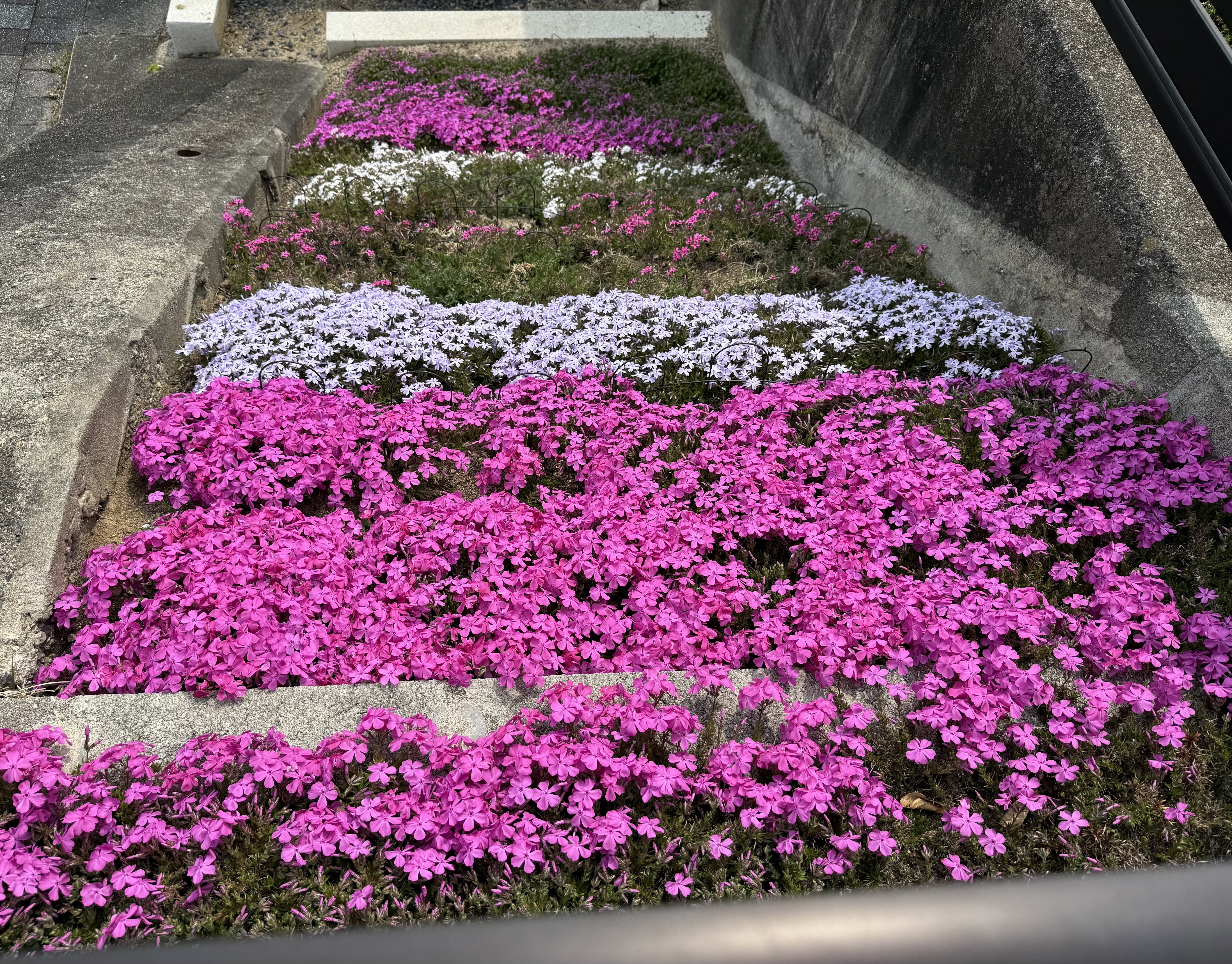 チューリップが可愛いらしく咲きましたね🌷そして斜面の芝桜も良い感じじゃないですか🌸