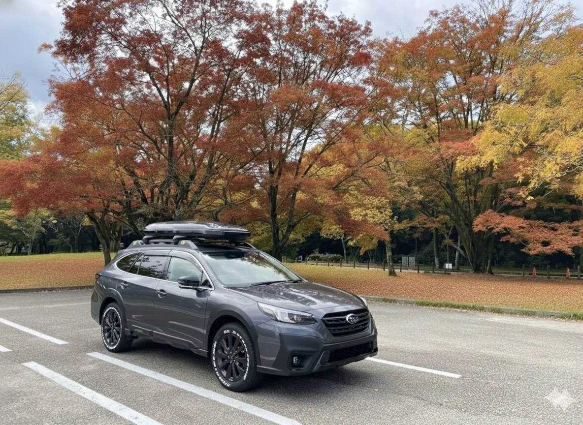 マグネタイトグレーのアウトバックと紅葉は色の相関的によく似合いますね😌