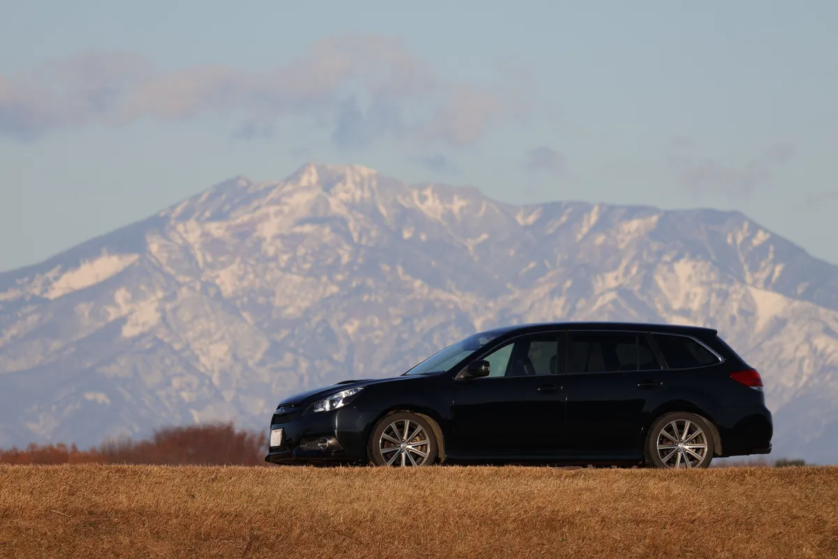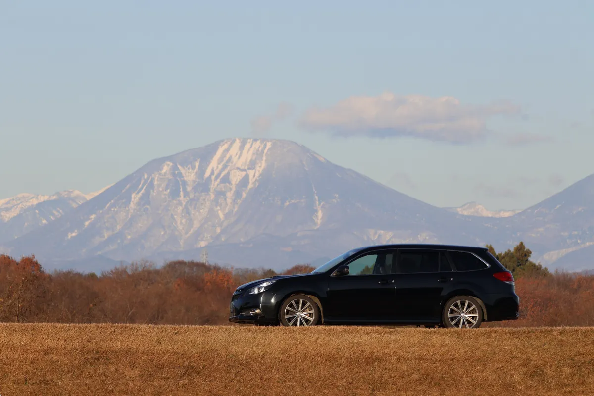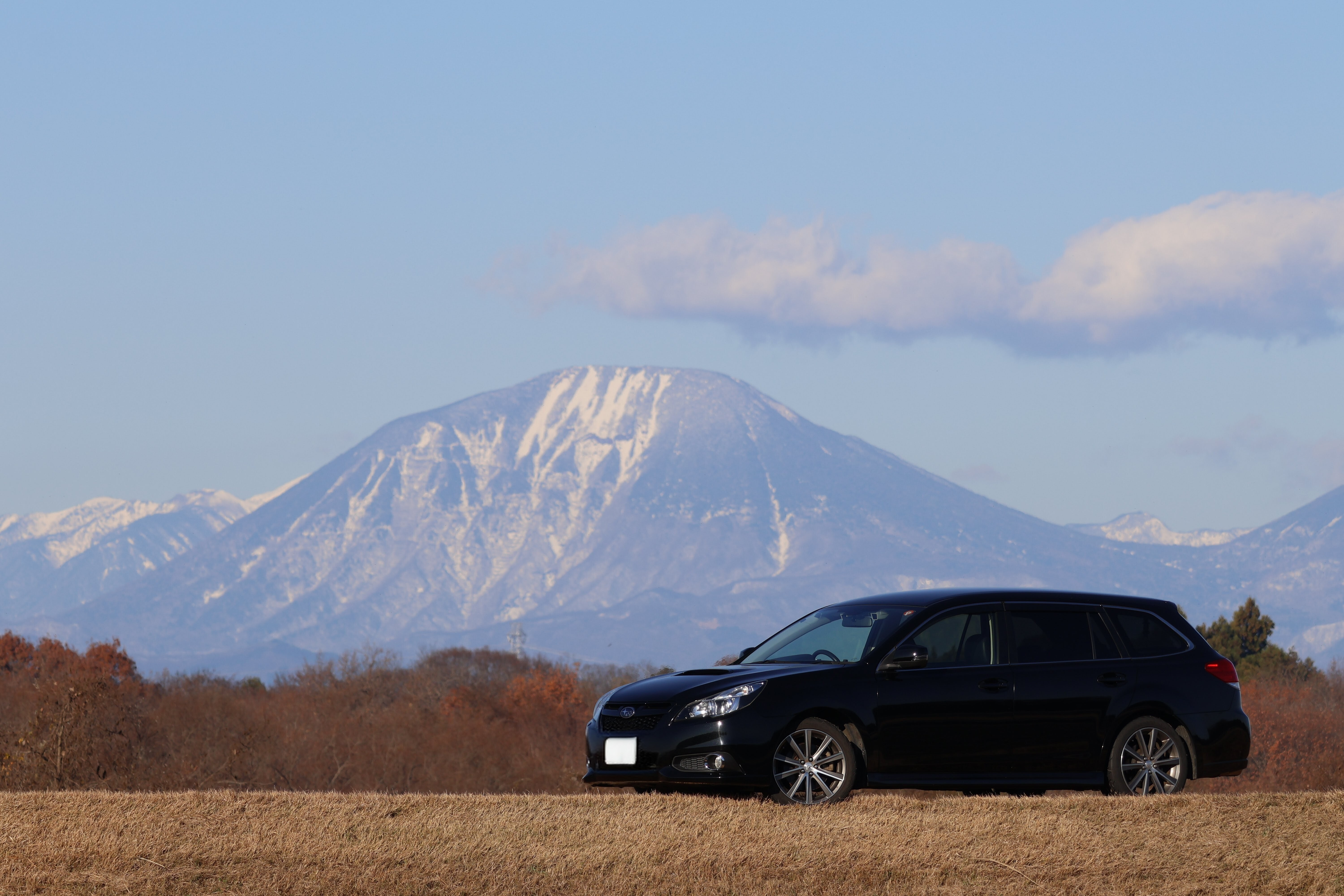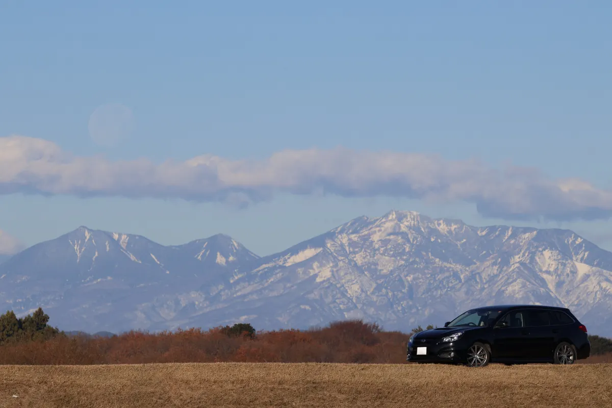 日光連山が綺麗に見えたので、レガシィを堤防脇に停めて、ちょっと離れたところから望遠レンズにて撮影。