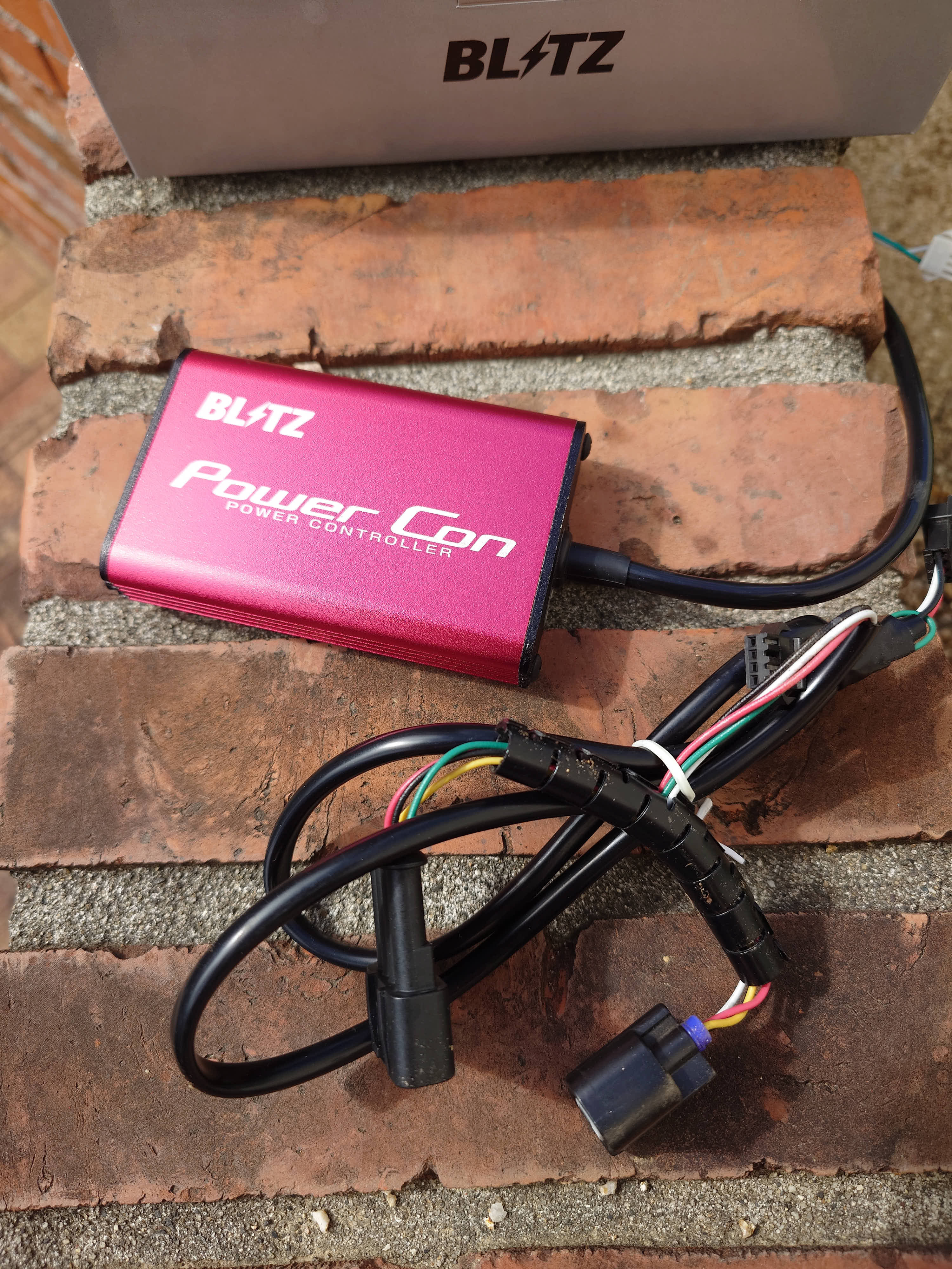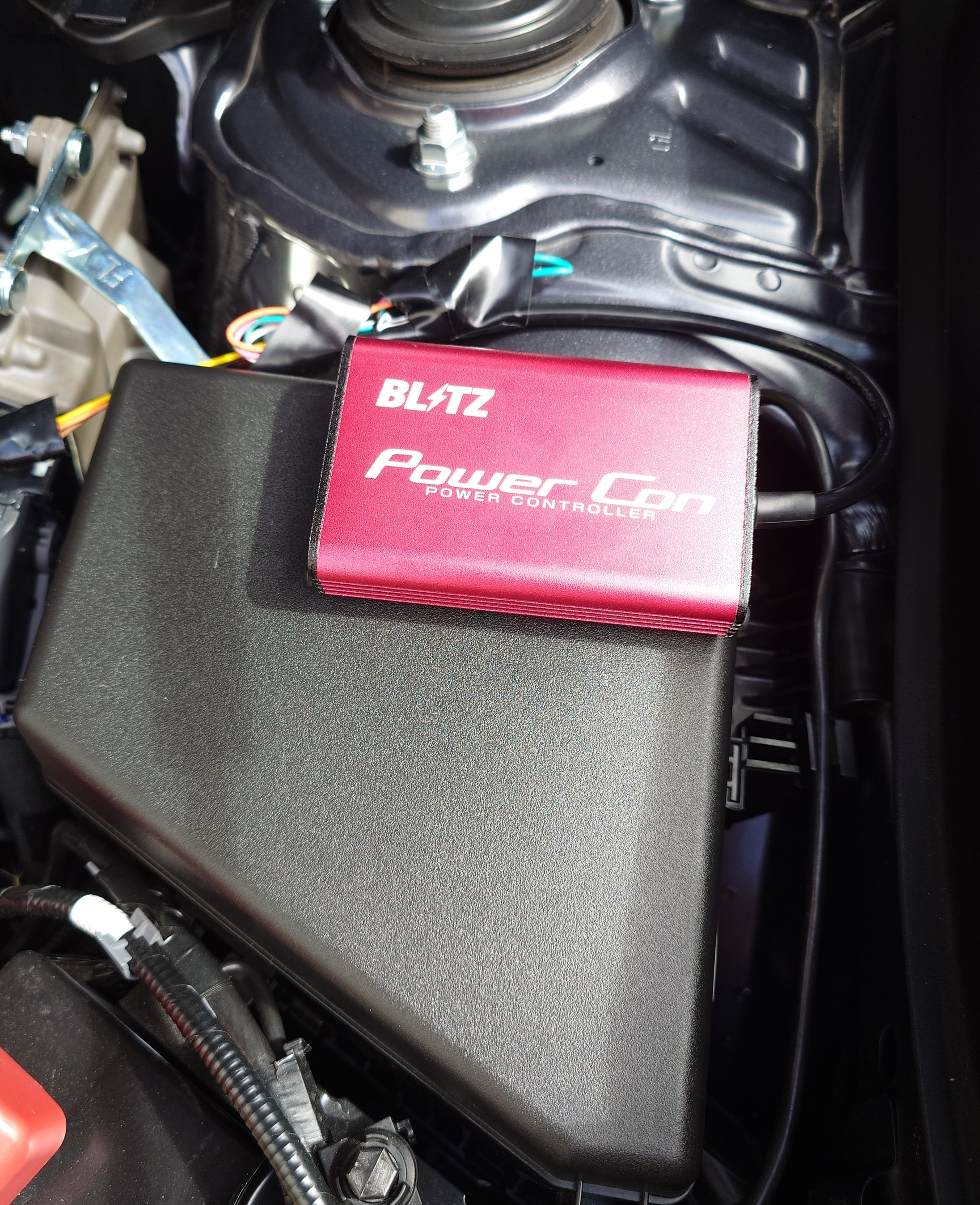 FUJITSUBO A-S装着で抜けが良くなった分、中高速域の伸びは向上しましたが、今回は更なるトルクフルな走りを求めて「BLITZ POWER CON」を導入しました。