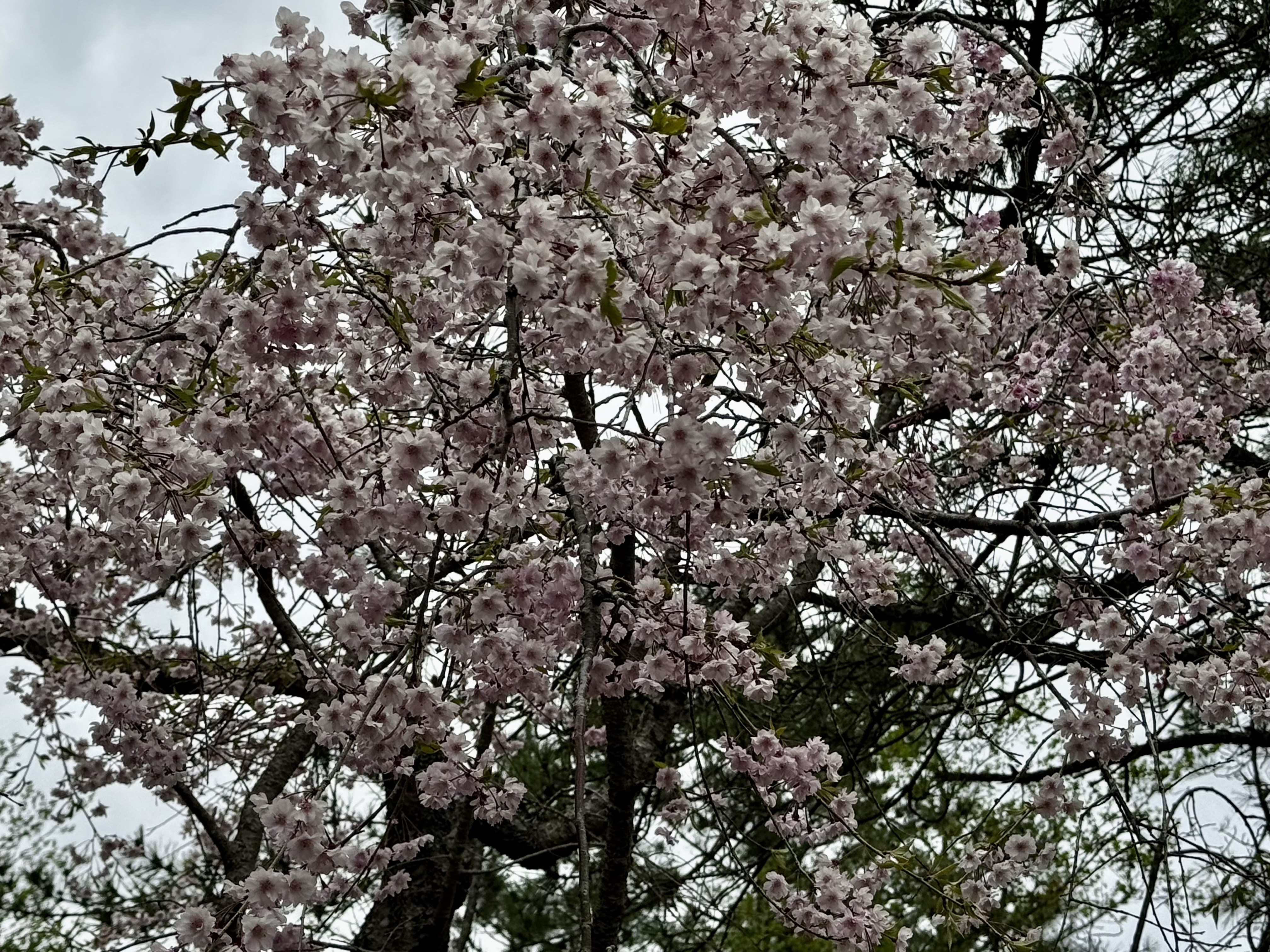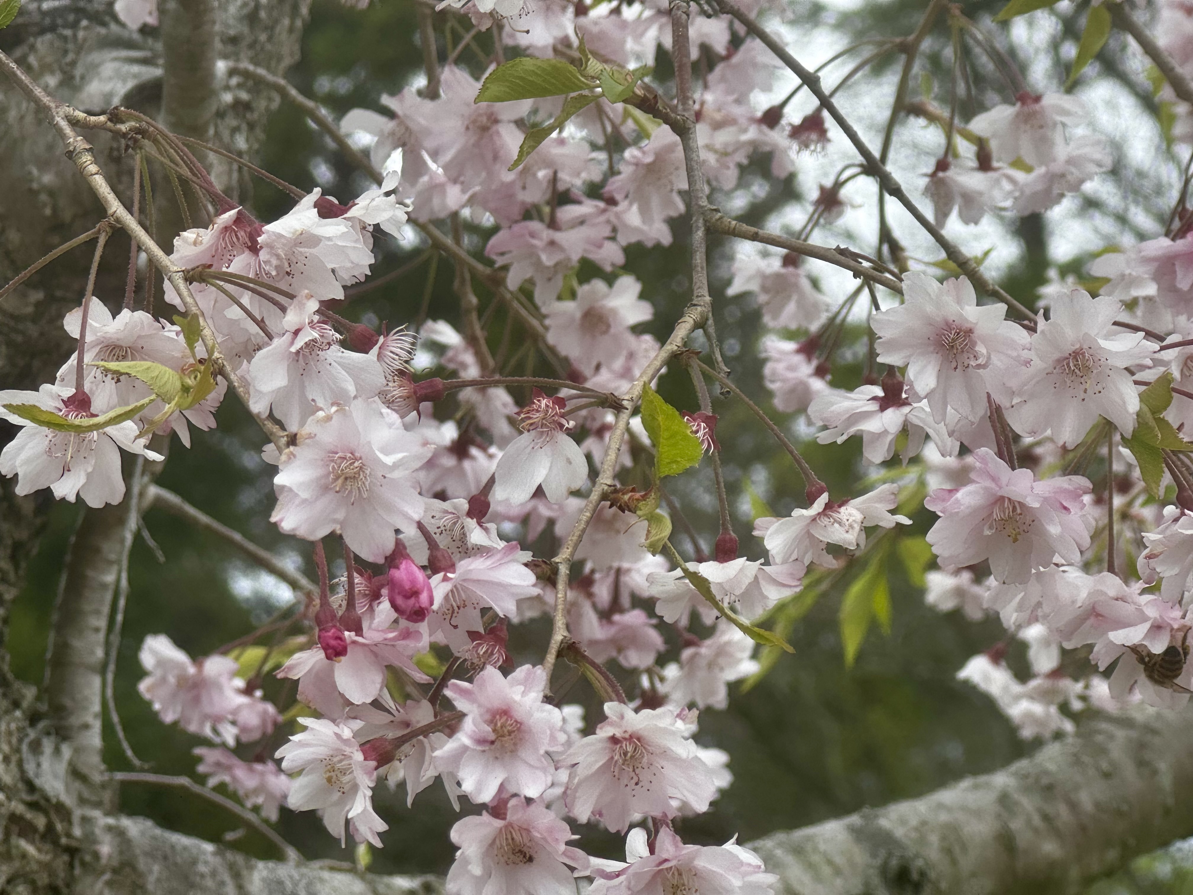 山桜の濃淡のピンクの花びらが曇り空に映えていて綺麗です☺️