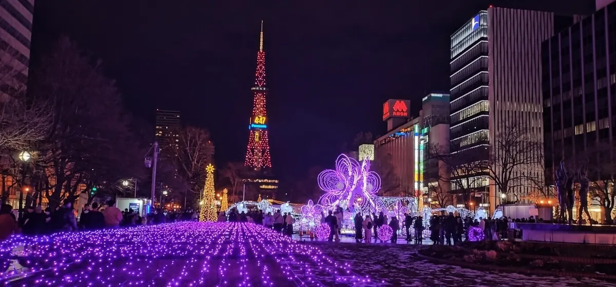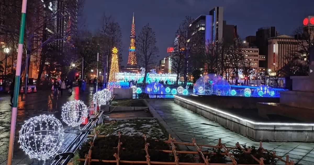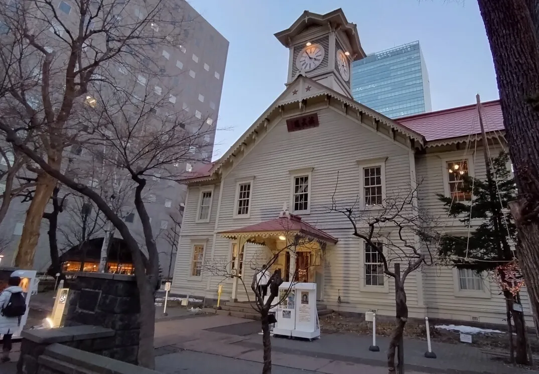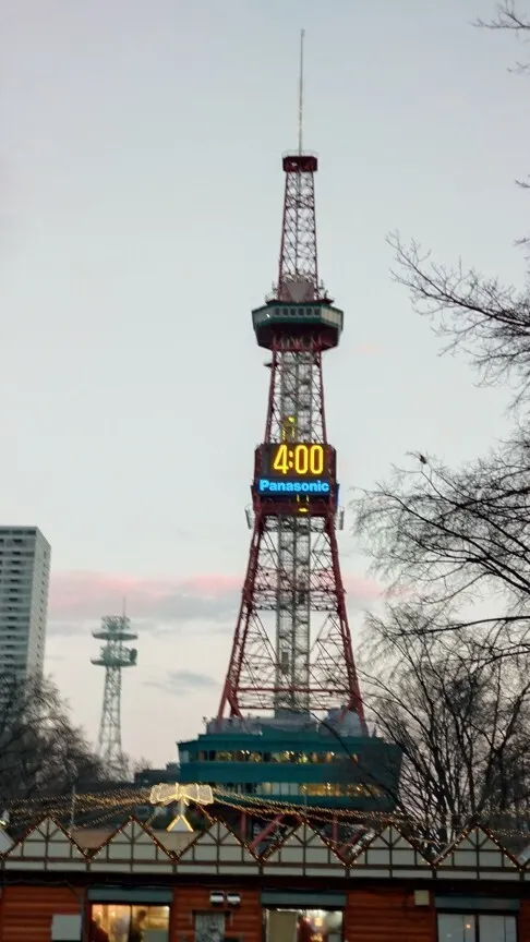 夕暮れを待ちながら大通公園へ向かいました。途中時計台の前を通りました。