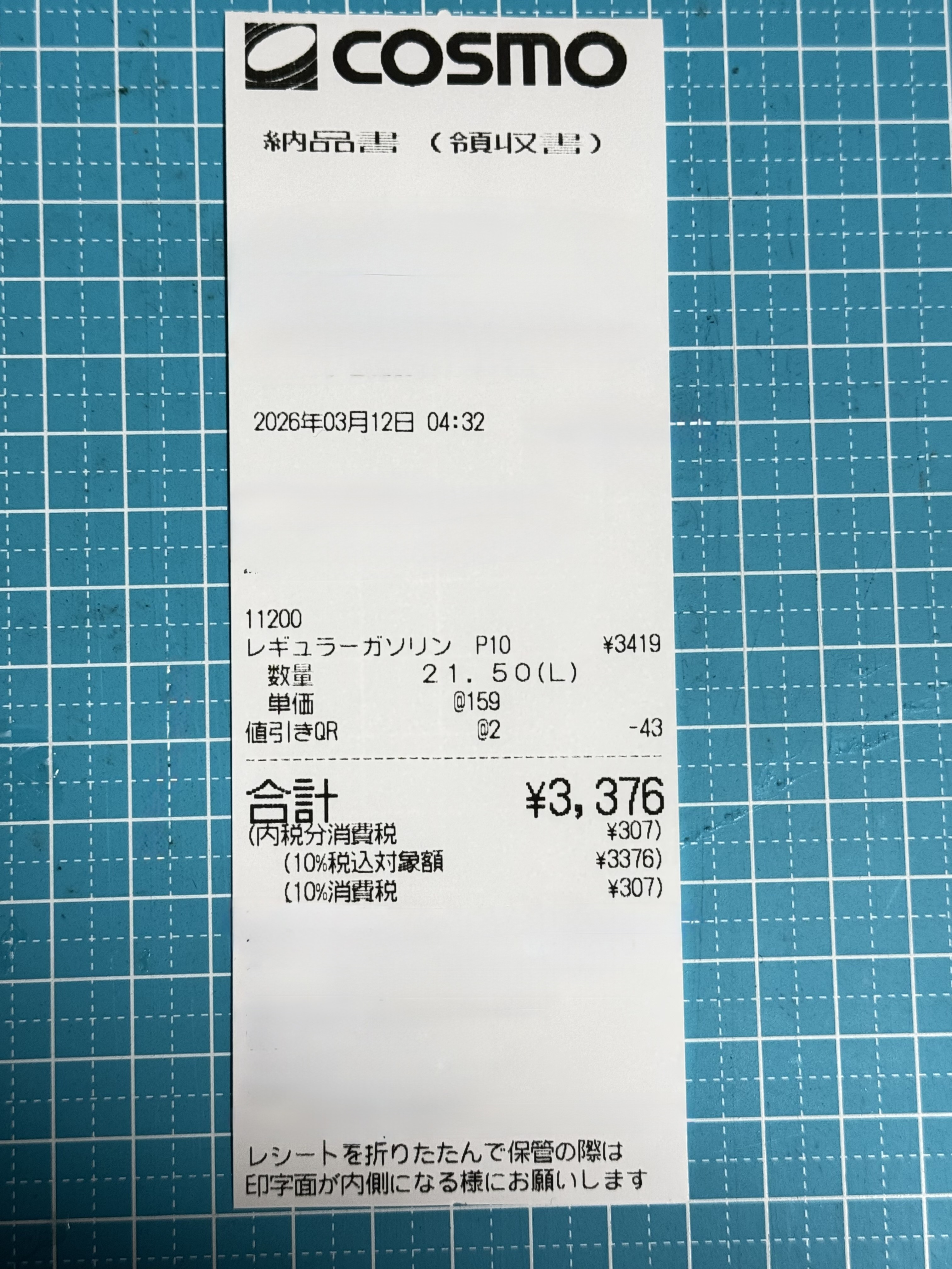 QRコードを使い2円引きの157円で給油出来ました。