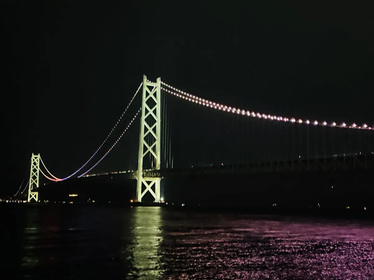 投稿を表示ピンクにライトアップされた世界最大級の吊橋「明石海峡大橋」🌉