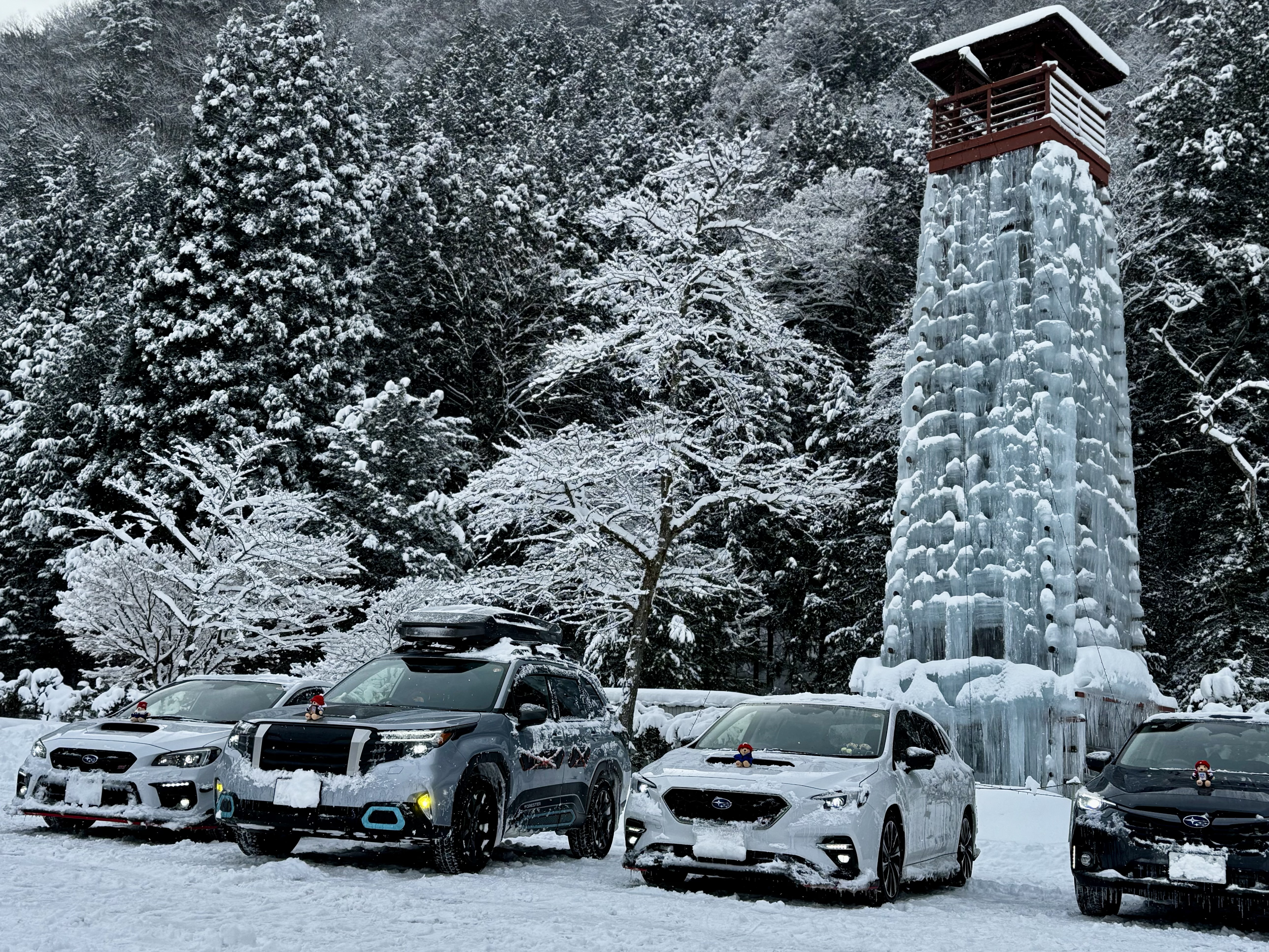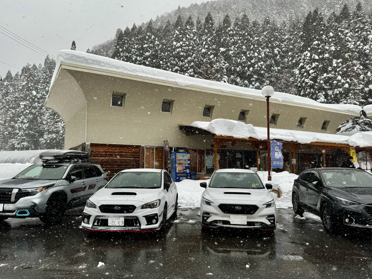 道の駅から見送り何事もなかったかの様に雪の中へ消えて行く3台のSUBARUがカッコ良かったよ✨