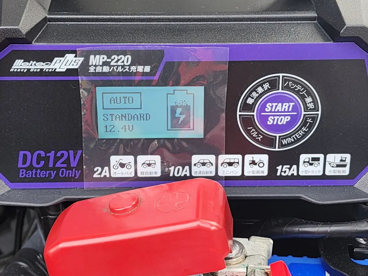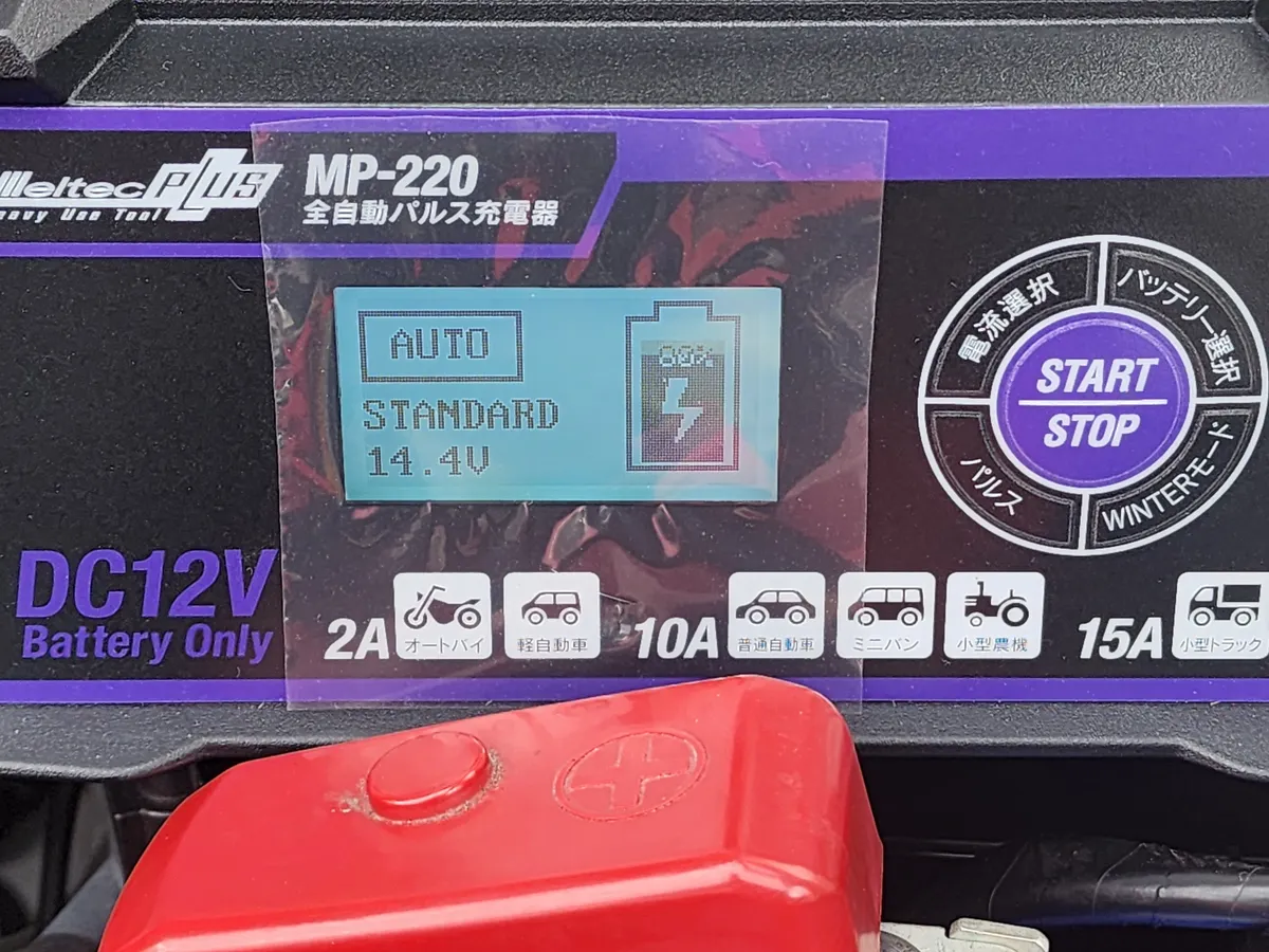 最近読んだネットの記事に「充電しすぎはバッテリーによくない」というのがありましたが、こちらのメルテックMP-220にはトリクル充電モードに切り替わりますので安心安全です!