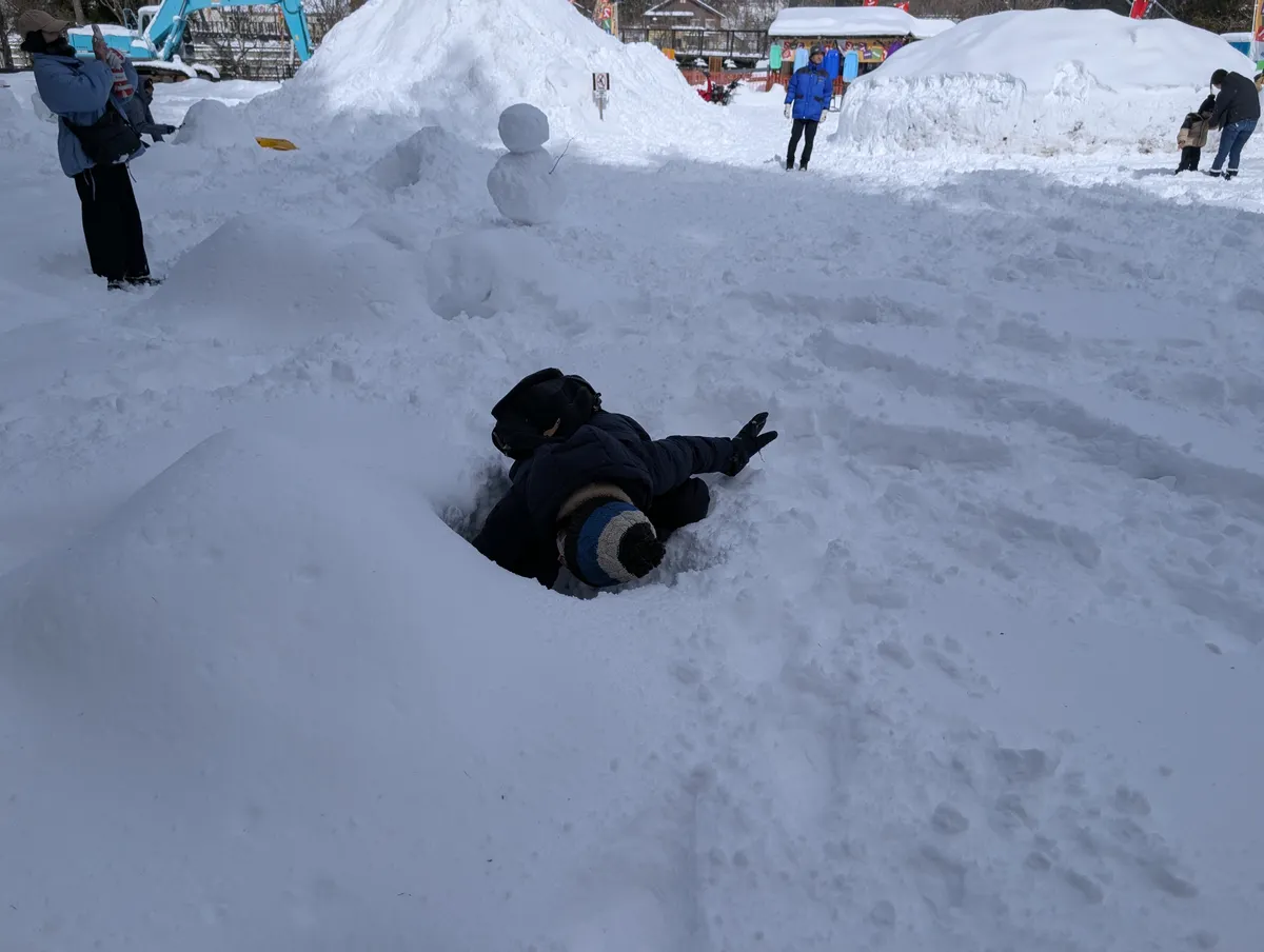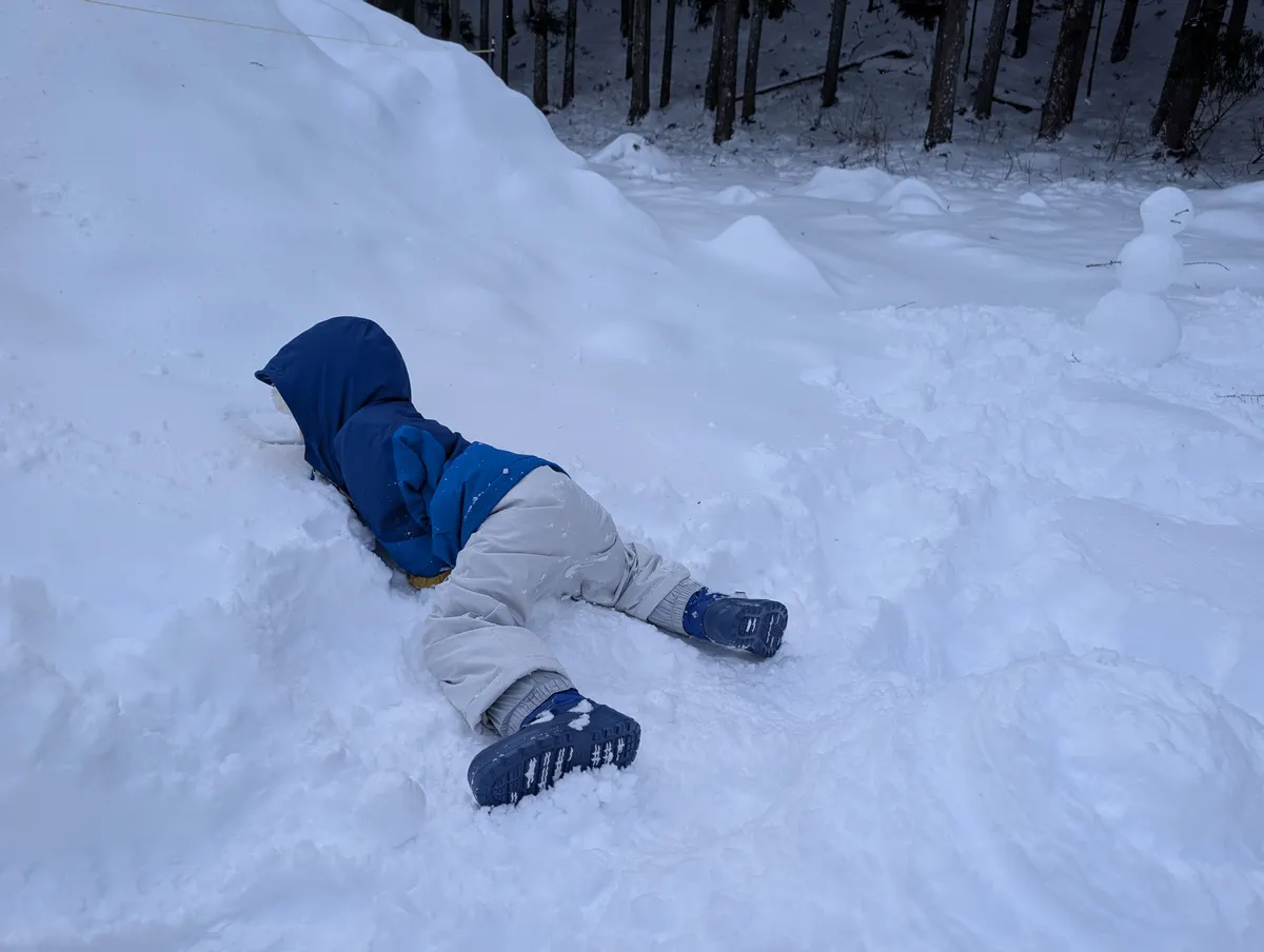 雪と戯れる息子さんの姿、可愛らしいです🥰