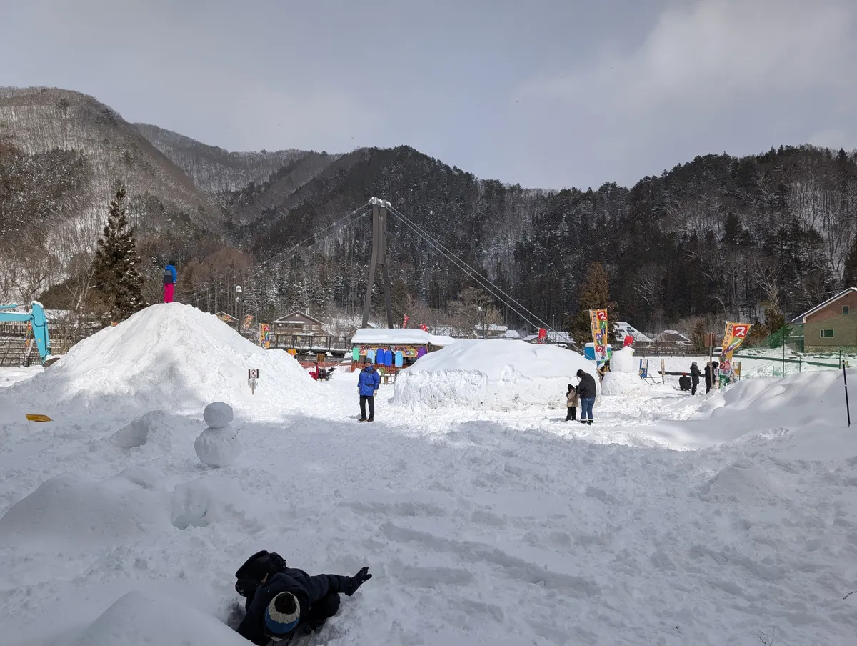 湯西川水の郷という施設にスノーパークがあり、そこで雪と戯れました。