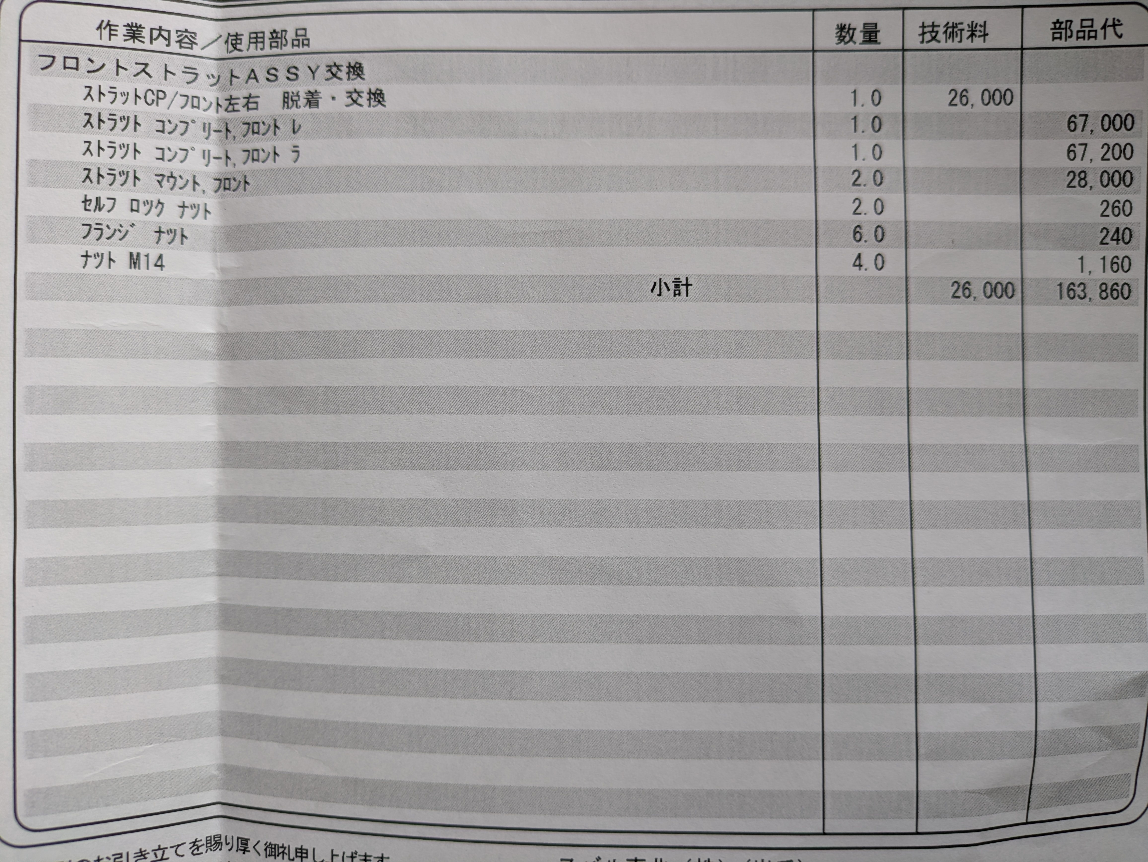 見積もりにあるストラットというのがビルシュタインのことでしょうか?