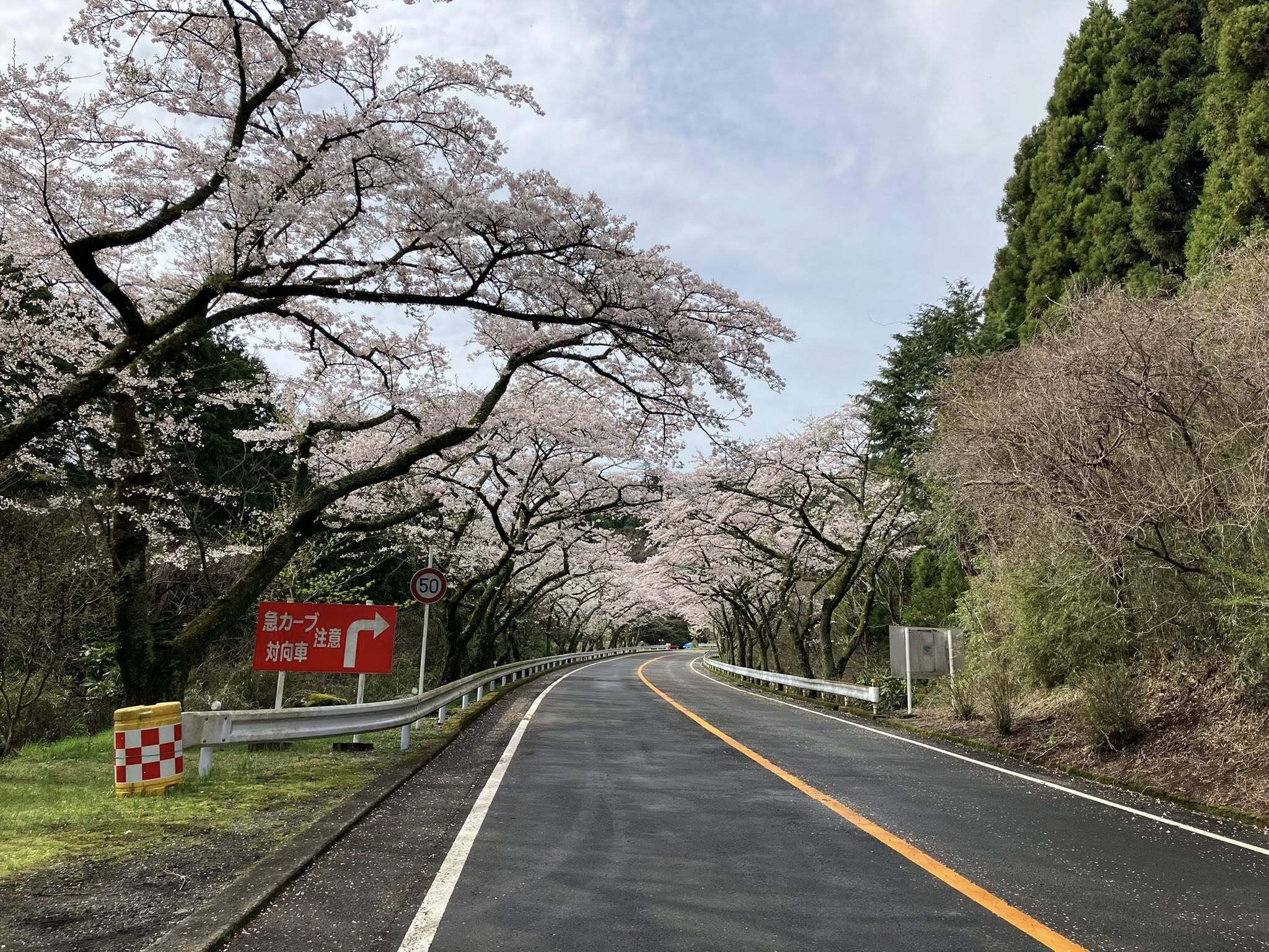 ▲満開の桜並木を箱根ターンパイクが突っ切ります!!
