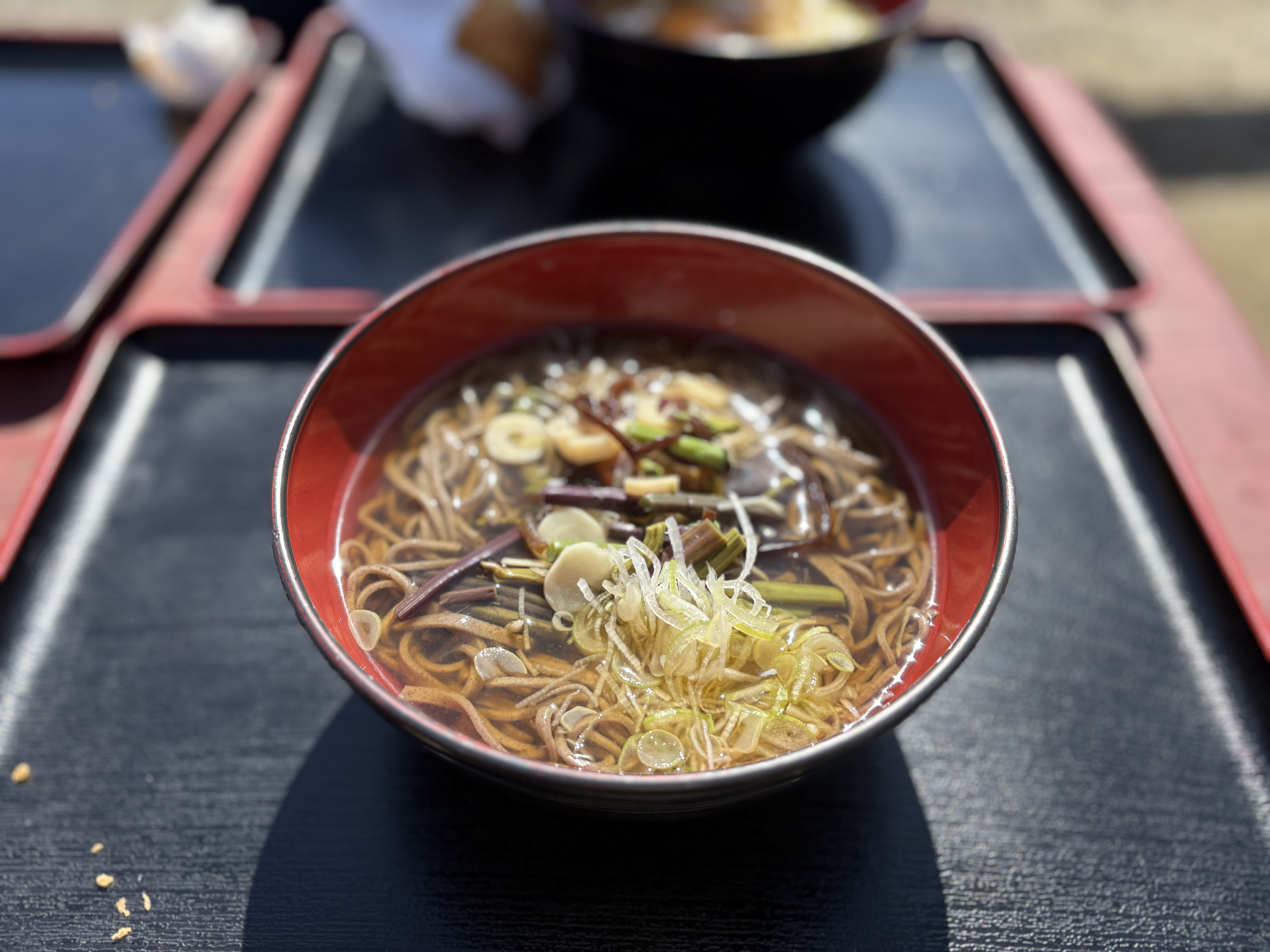 ここは早朝の卵かけご飯が有名ですが、お昼前だったので山菜そばをいただきました。
