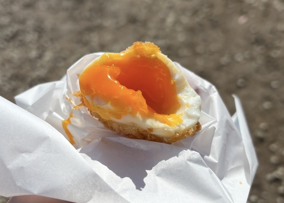 外の衣はサクサク、半熟卵にはしっかりと塩味が染みており、ものすごく美味しい。