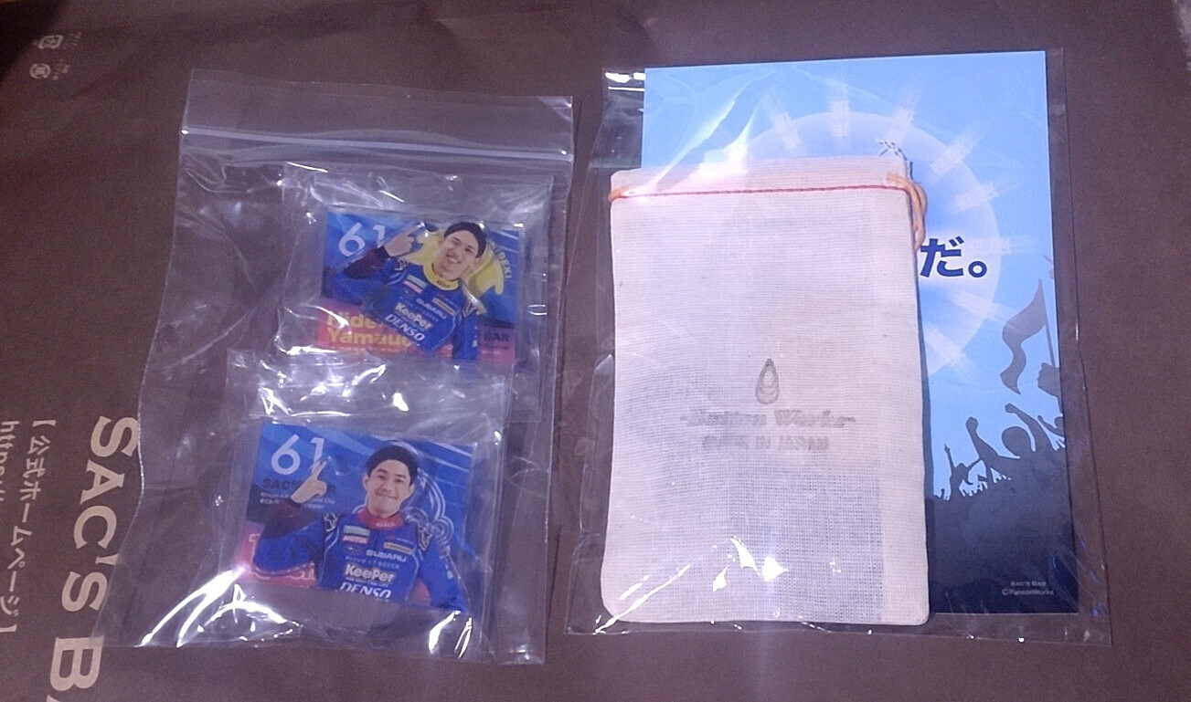 内容物はアイキャッチ画像のキーホルダーとポストカードとノベルティのアクリルスタンド