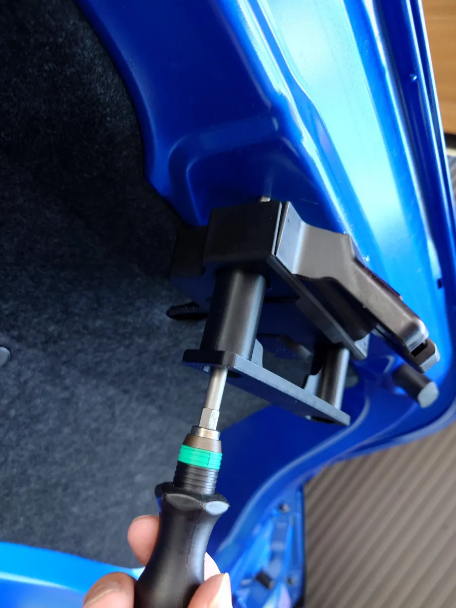 という訳で、今回のカスタマイズは、実用性向上のためリアゲート裏にステーを装着しました。