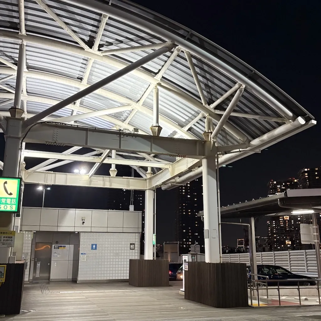 夜の辰巳PAです。大都会の夜景を背景に撮影。芝浦PAに行く時とは逆回りです。