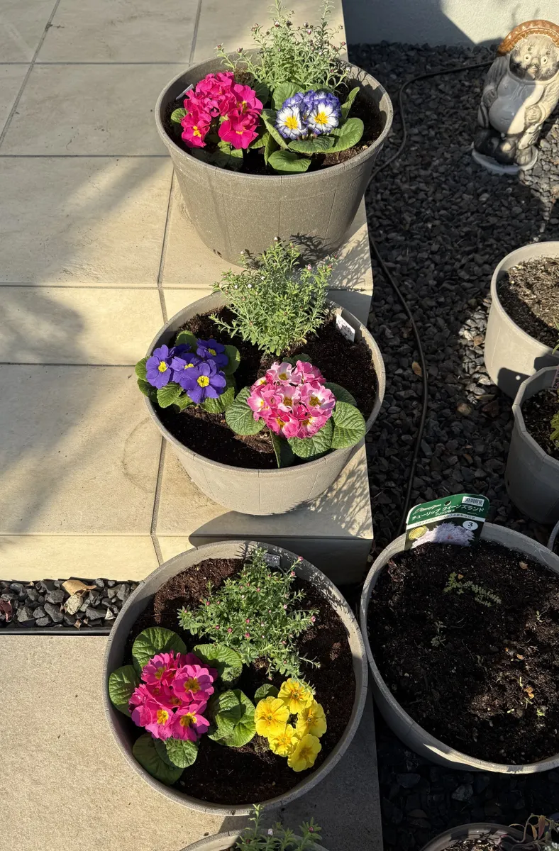 今回は寒い冬を彩ってくれるプリムラジュリアンに、以前から植えてみたかった「花かんざし」を投入❣️