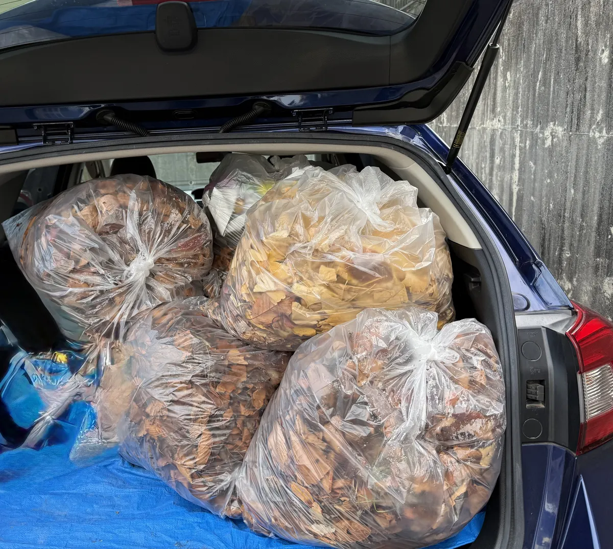 桜の落ち葉は冬の間にナメクジの温床となるのを経験したので、集めて環境センターへ🚙