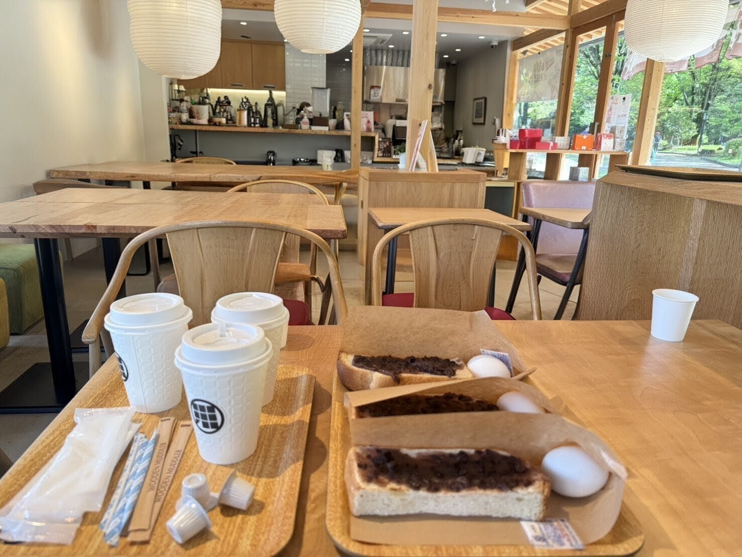 モーニングの定番の小倉あんトーストとゆで卵です。グリフォレさんが探してくれていました。