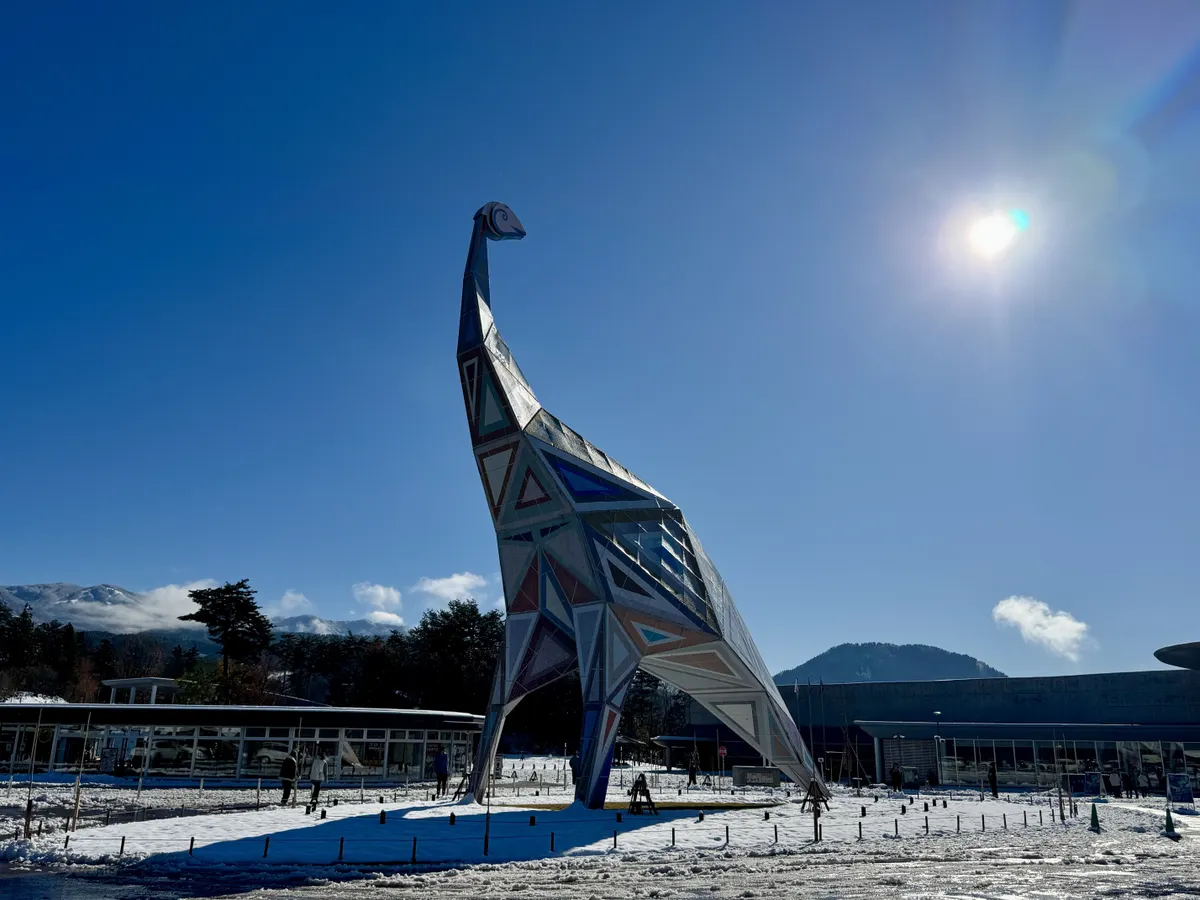 雪の峠を越え恐竜博物館に到着