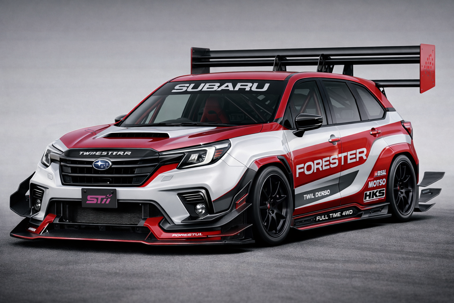 はい、こちらがフォレスターのレース仕様です!後ろのでっかいウイングよ、みてみぃ?えっぐいなぁ!なぁ?(興奮したやつ)ごっつくてえぐいっすね!こんなんあってもおかしくないほど。でも後ろの、、、あれ、、、なんやったっけ?、、、思い出せない、、、あっ!思い出した!フィンですフィン!そのフィンあれすぐ「ぽろっ!」ってとれそうだな、、、