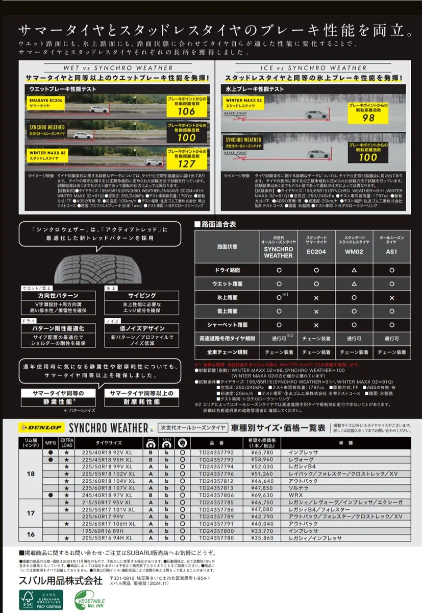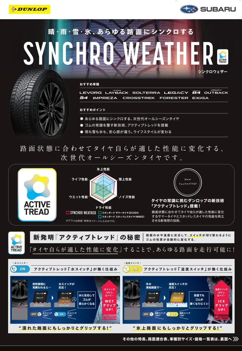DUNLOPの次世代オールシーズンタイヤ「SYNCRO WEATHER」を昨年10月の12ヶ月点検直後に購入しました