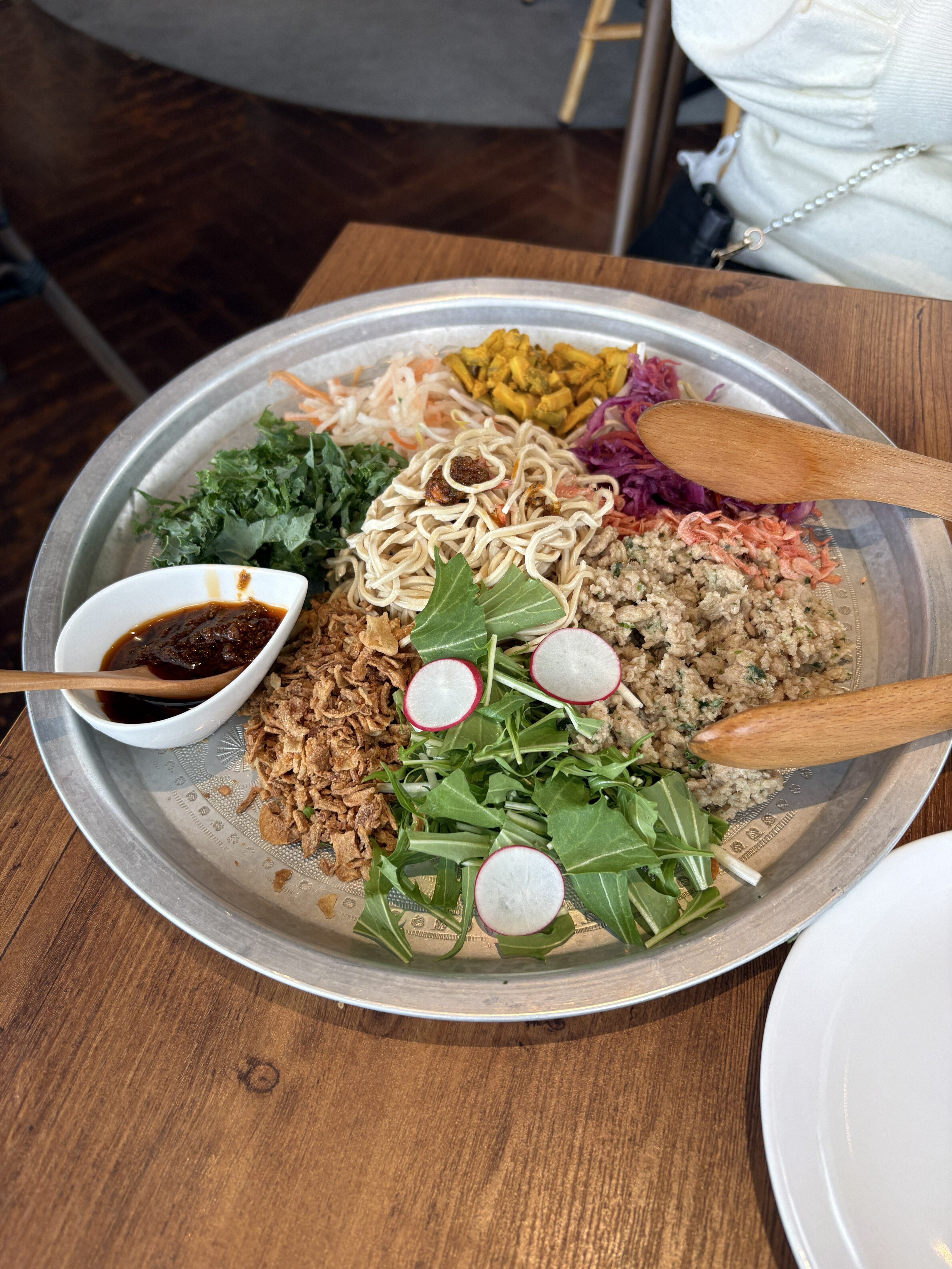 最初のお食事は妻が注文した彩り野菜の豆腐干和え麵。