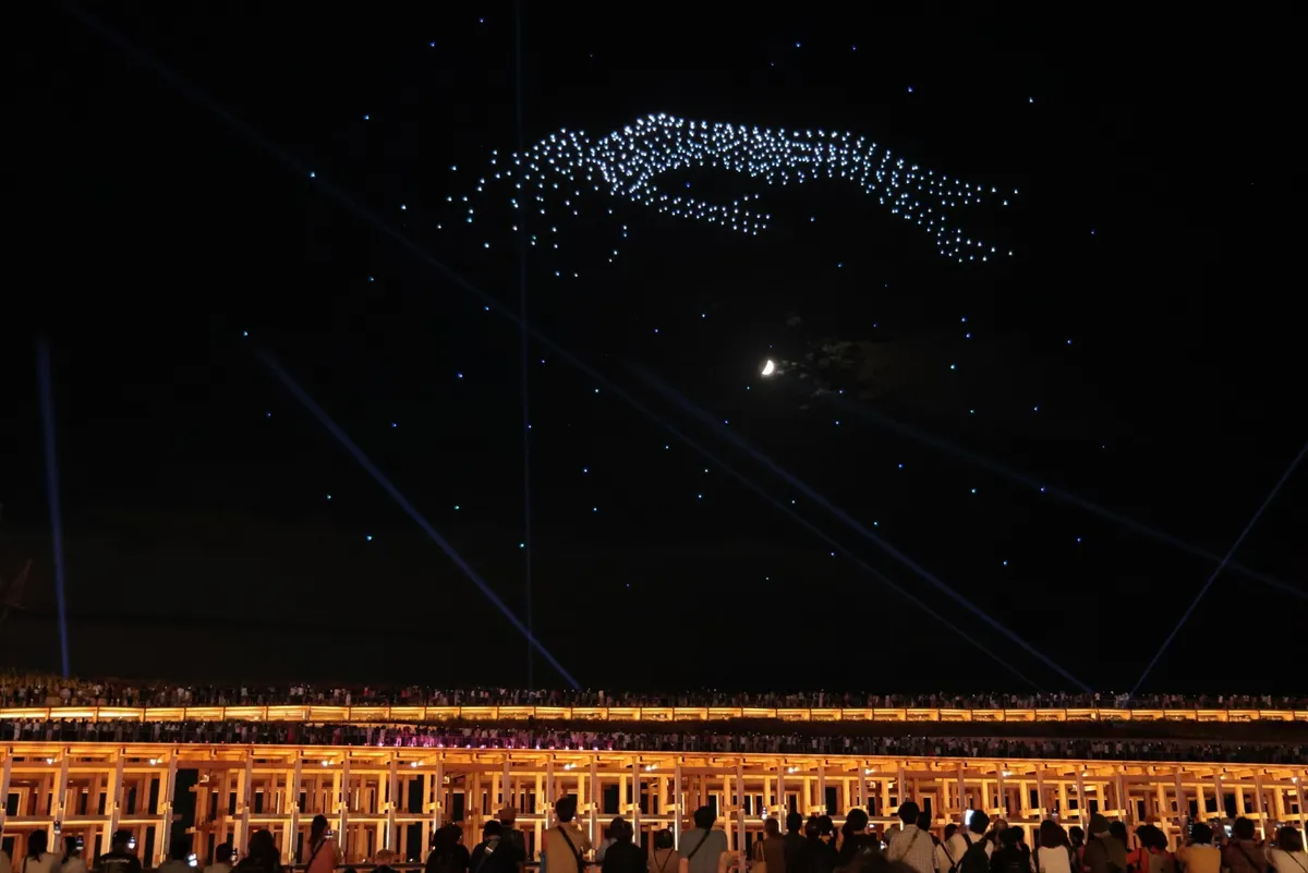 14. ドローンショーも見ることができました。初めて見ましたが夜空に浮かぶ光は不思議な感じでしたね。