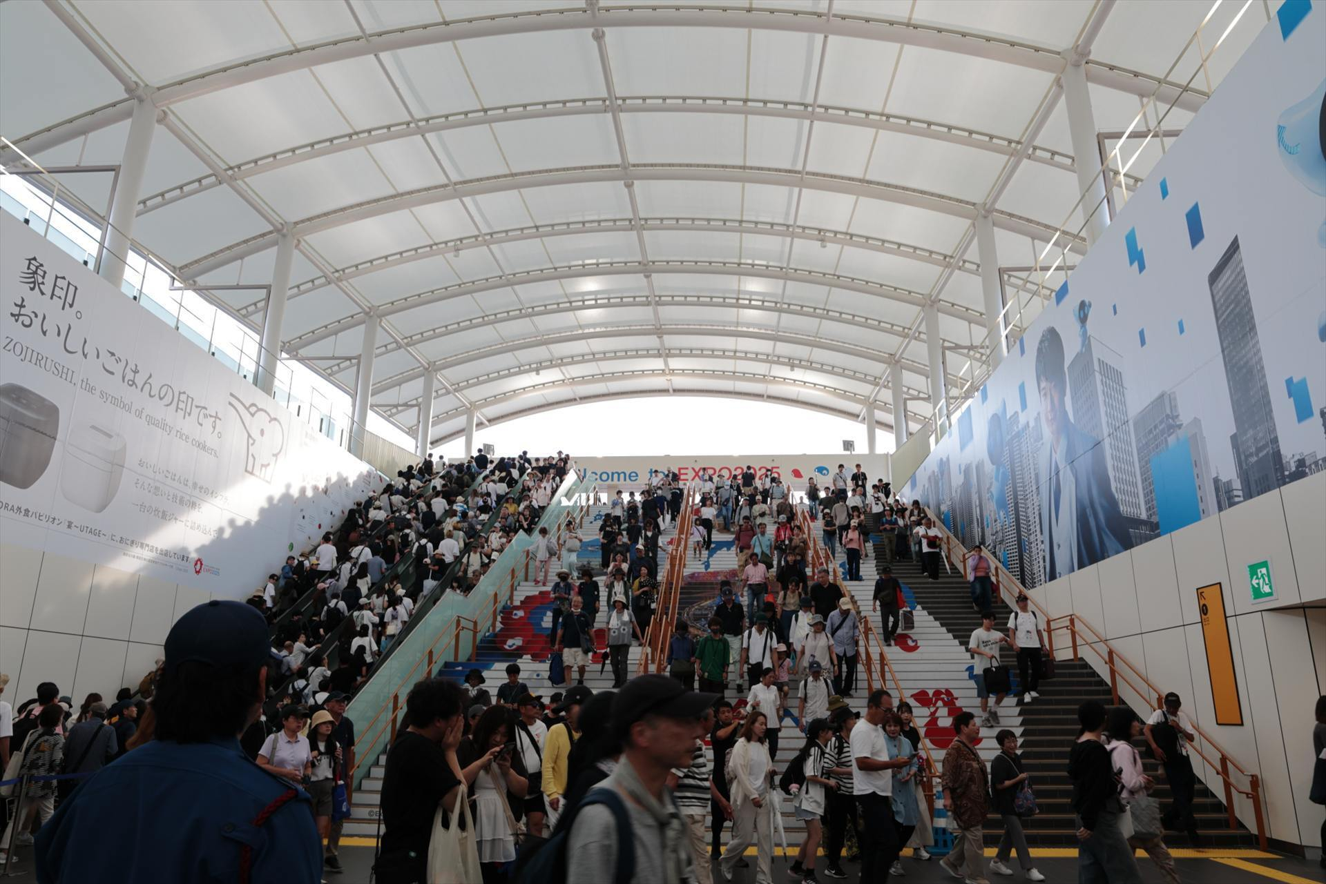 06. 大屋根リングに上がるエスカレーター。めっちゃ人が多いです。