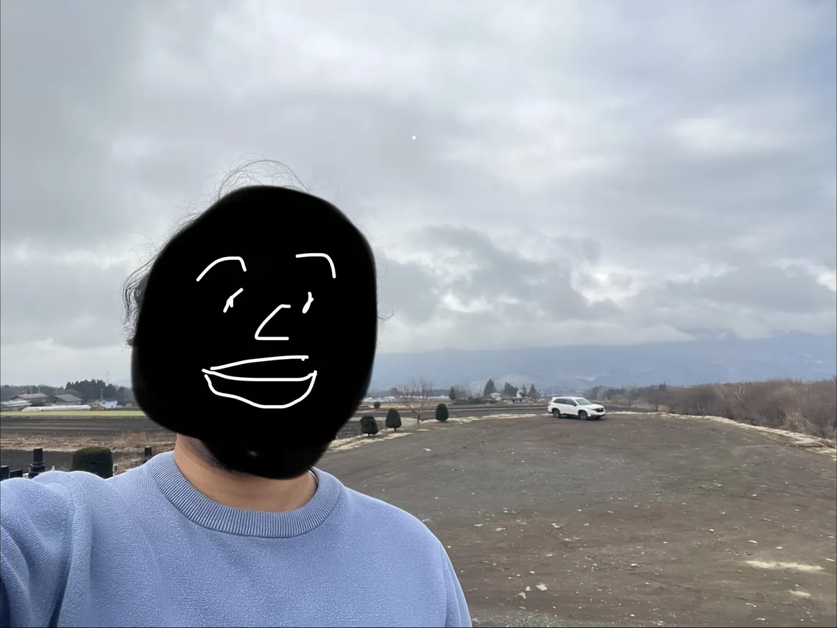 さらにからっ風街道を進みます。天気は少しずつ☁️に。。道中のひらけた所でパシャリ。