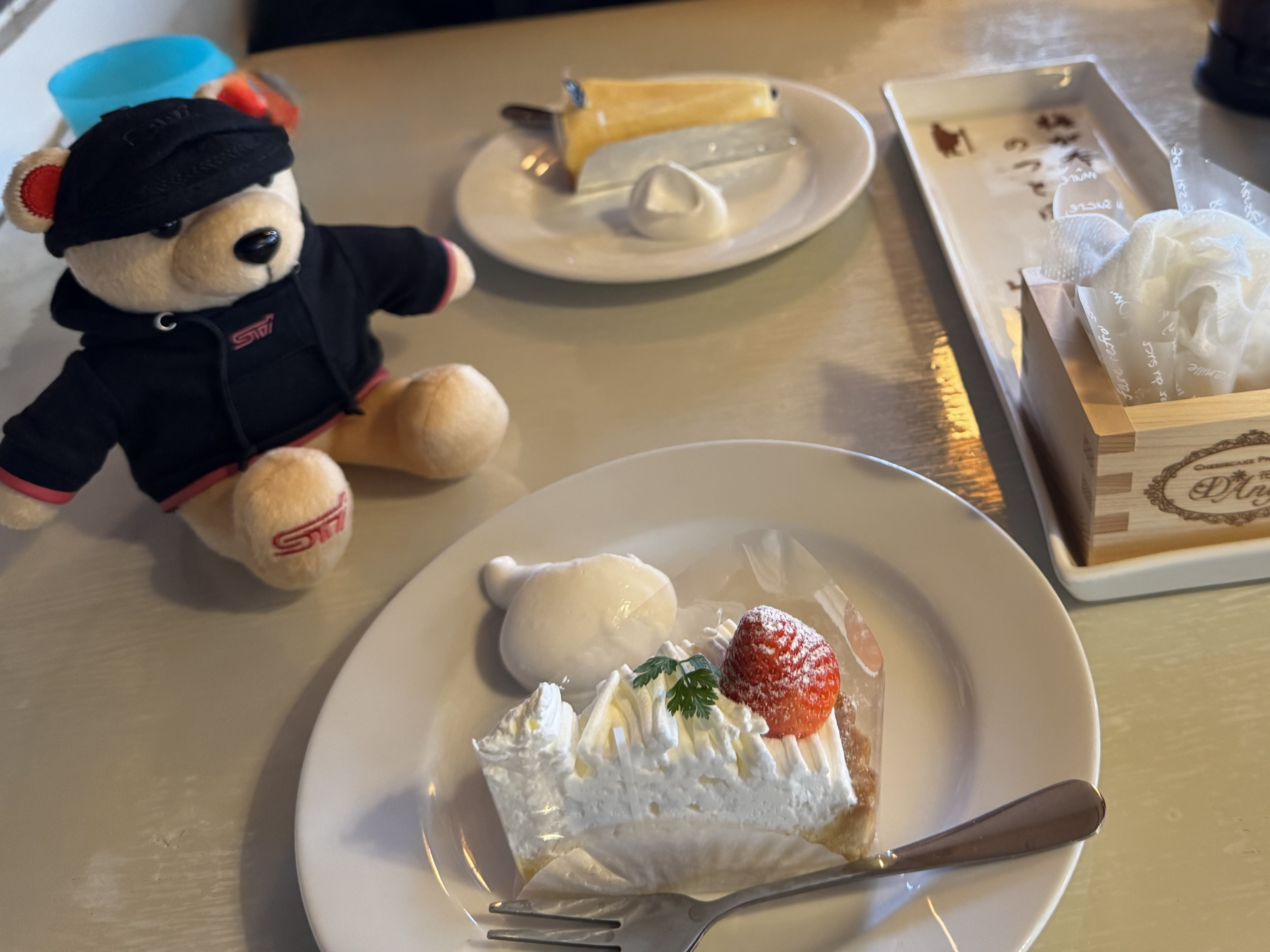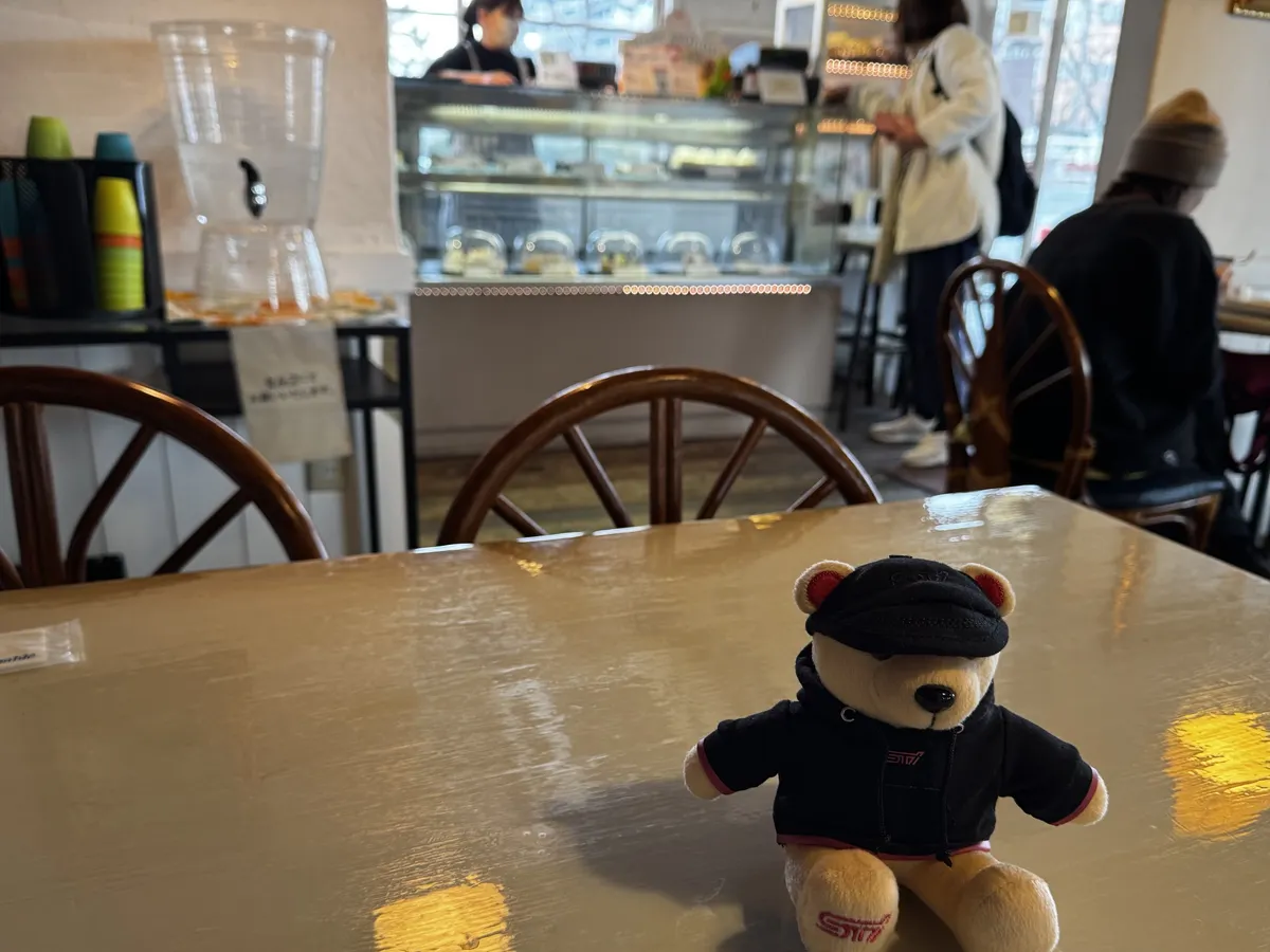 先にケーキを購入して店内で食べるスタイルなので、ベアちゃんとケーキが来るのを待ってます〜🧸