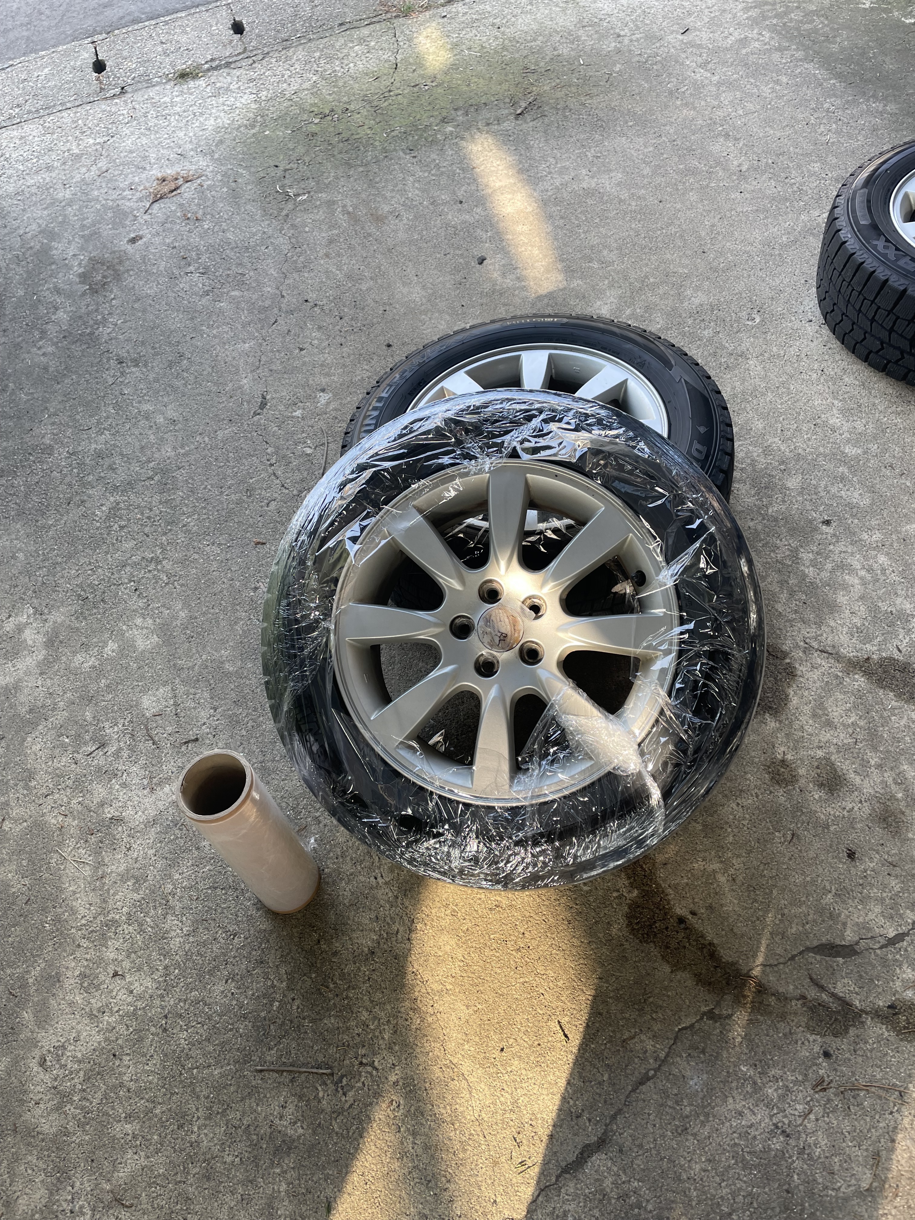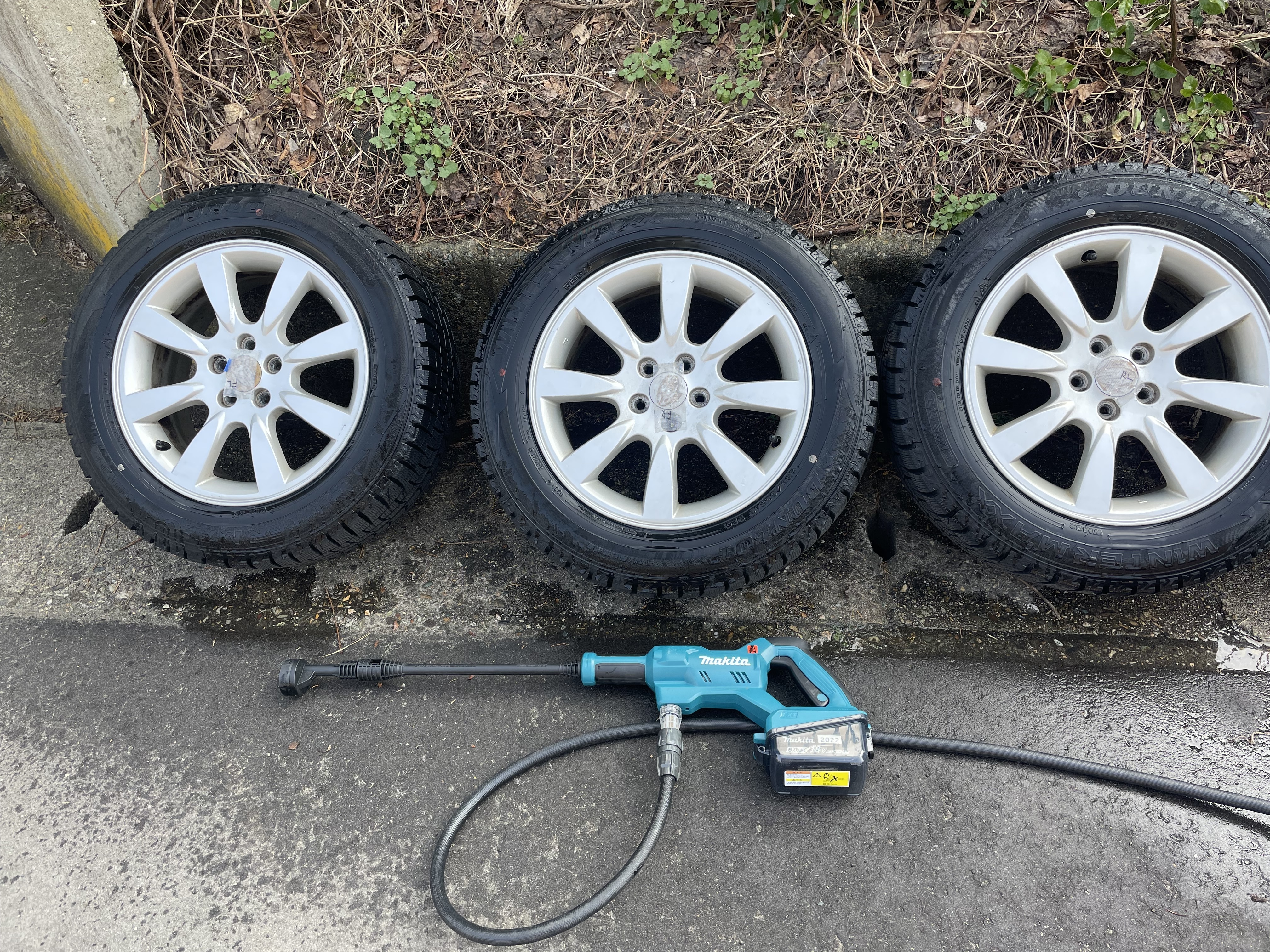 気持ちの問題でしょうが、洗ったスタッドレスは空気圧を100kpくらいに落として、トレッド面をストレッチフィルムで巻き巻き