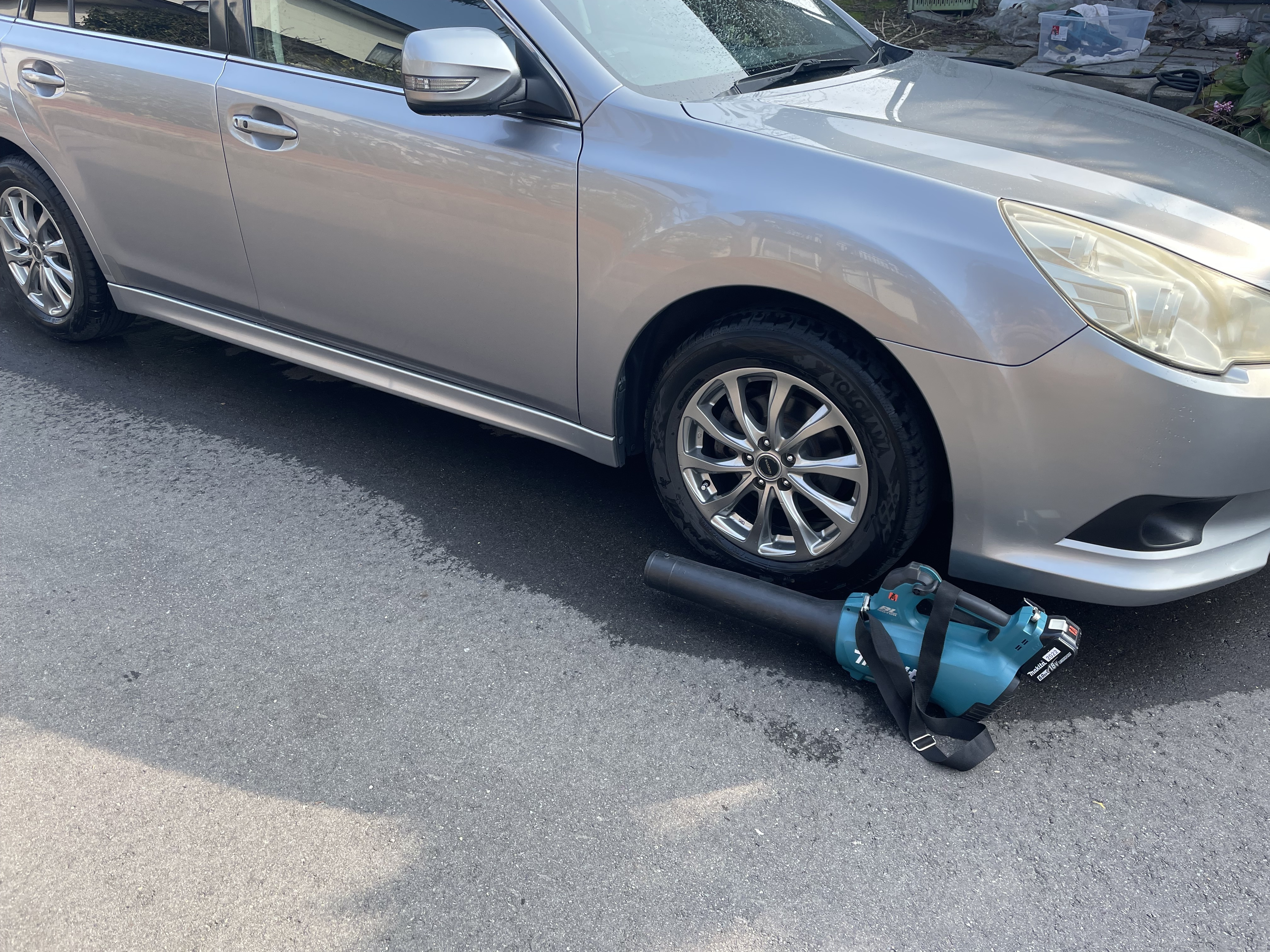花粉まみれになったレガシィも水洗いして、ブロアー (純水システムほしいな笑)