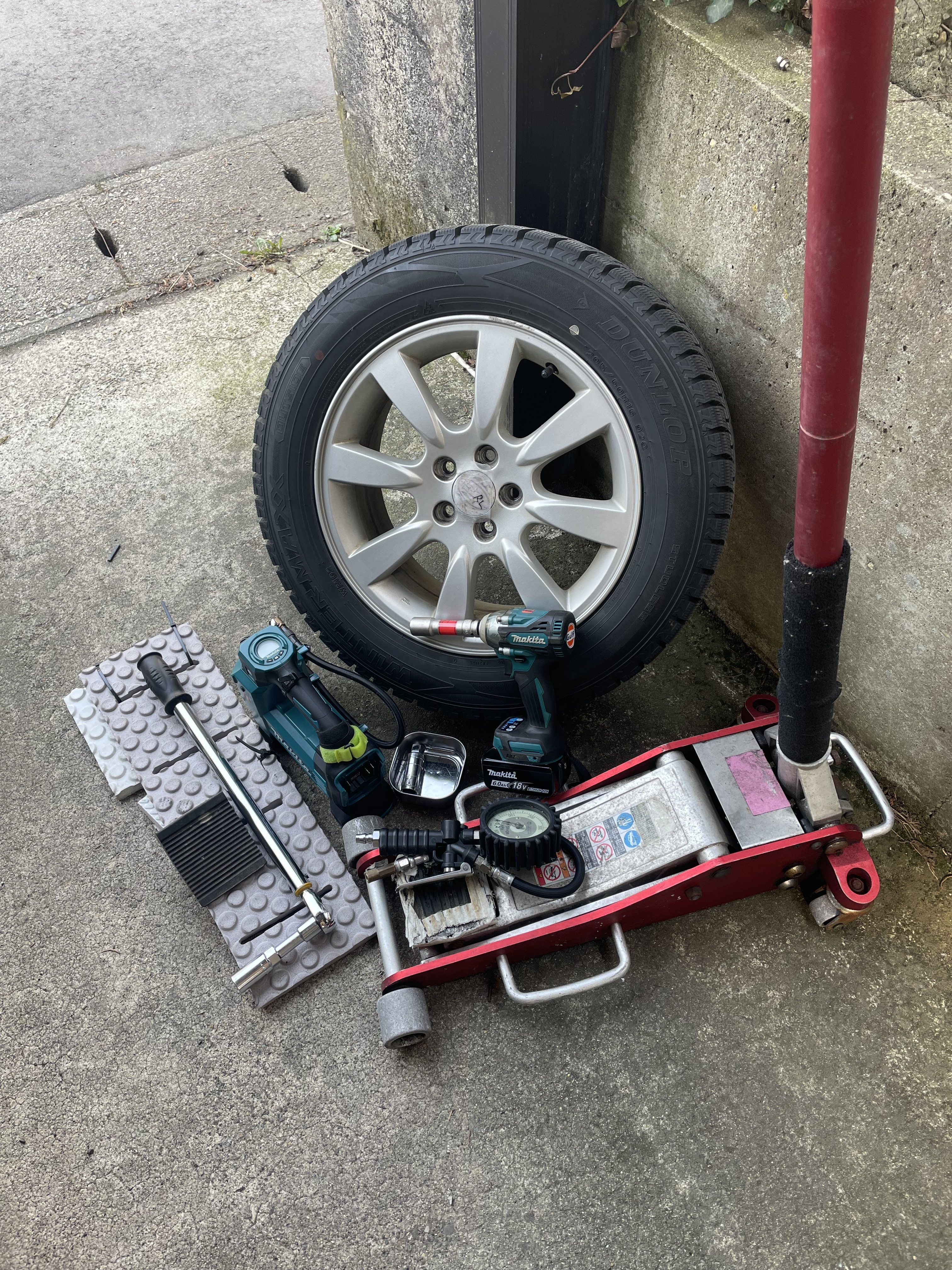 いまや ホイールに組んでいるタイヤですら交換工賃は高いので、手持ちの工具あるので自分で交換